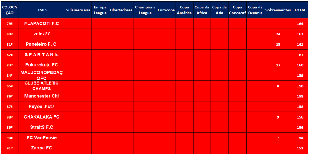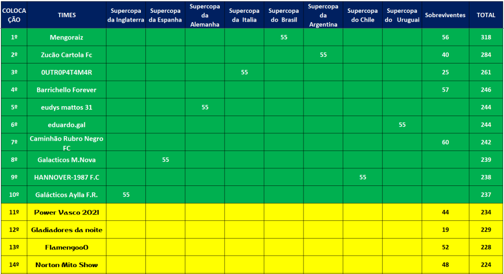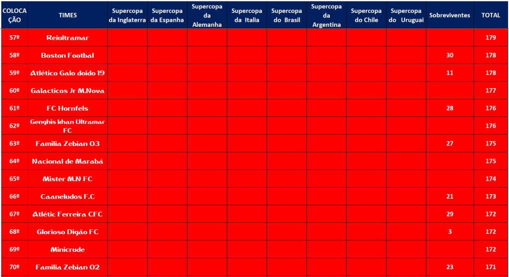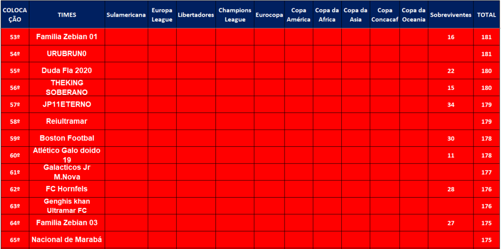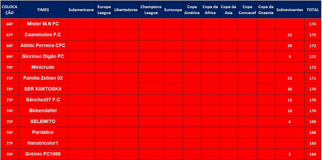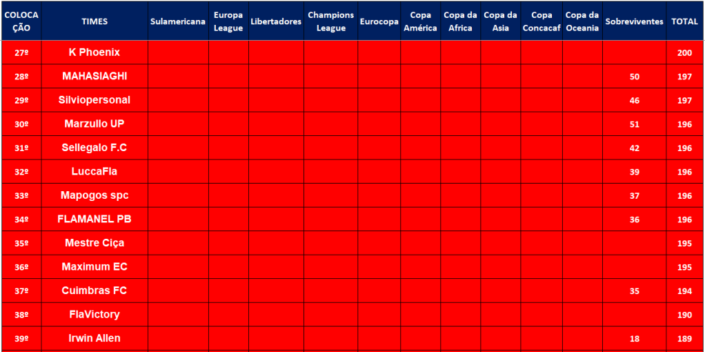 CLASSIFICAÇÃO – O MAIOR CAMPEONATOS DA HISTÓRIA