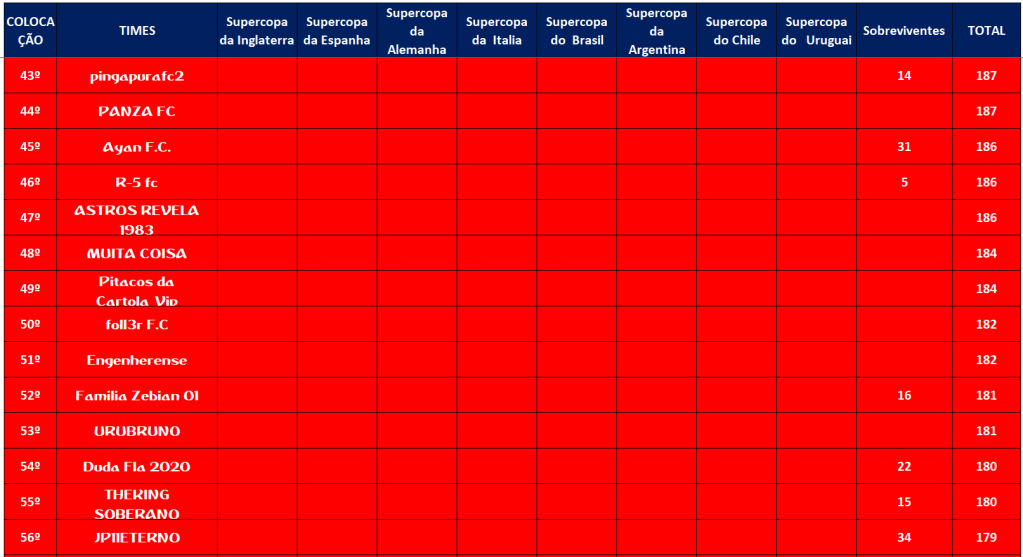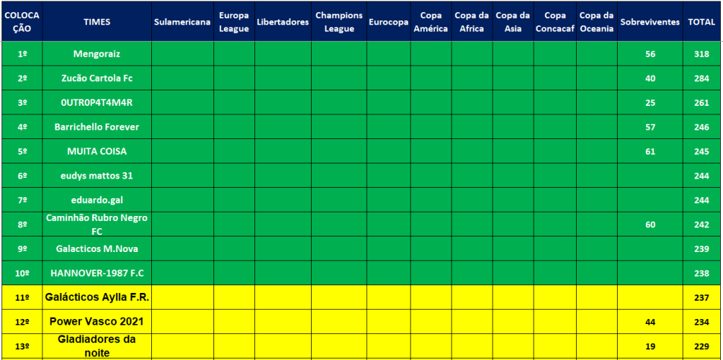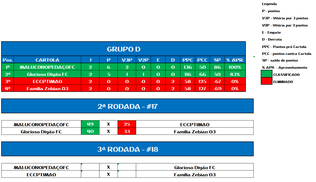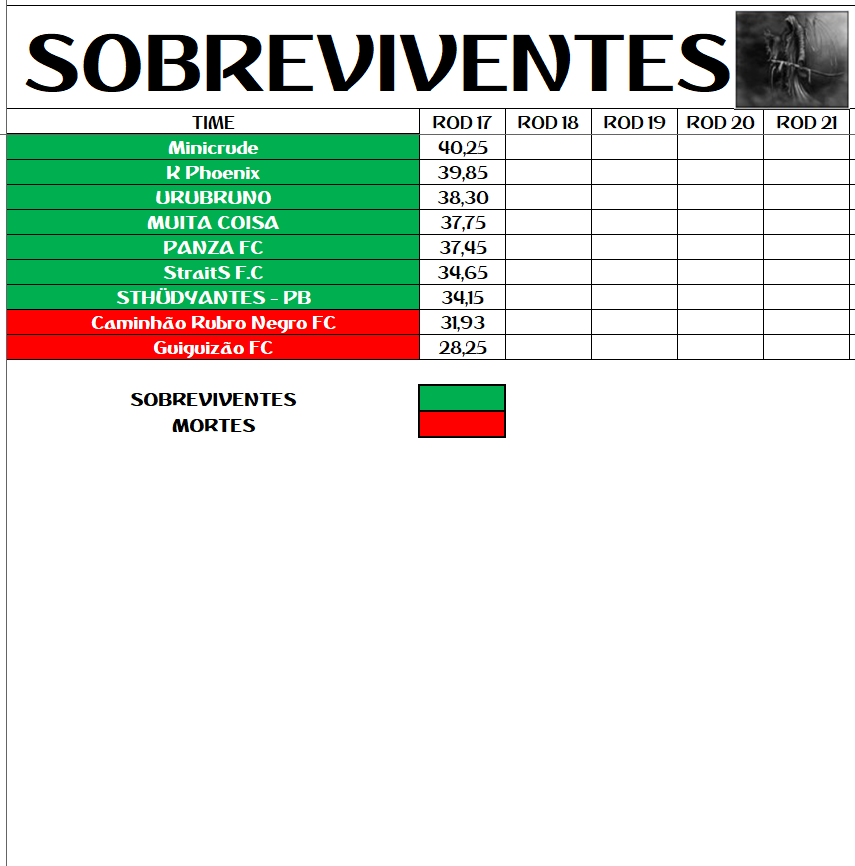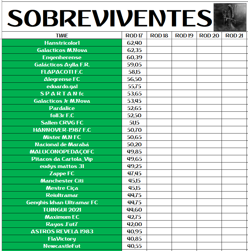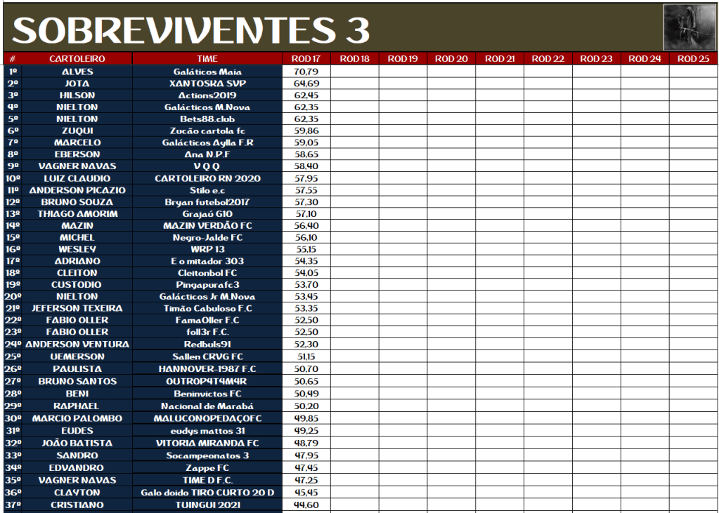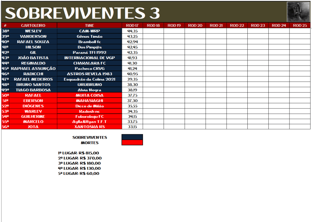 SOBREVIVENTES DA TEMPORADA – RODADA 17