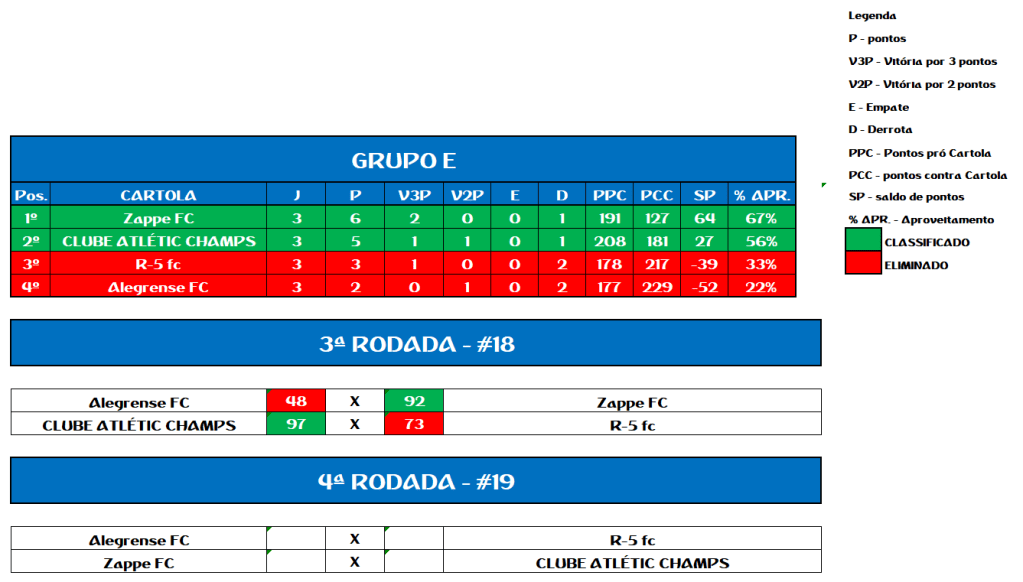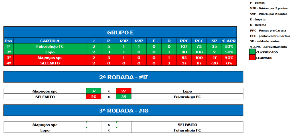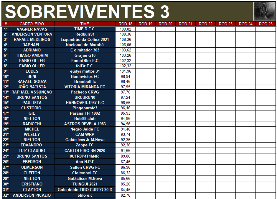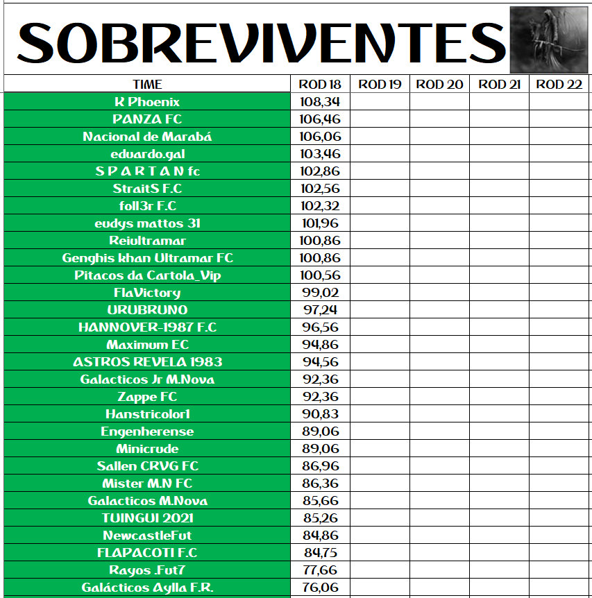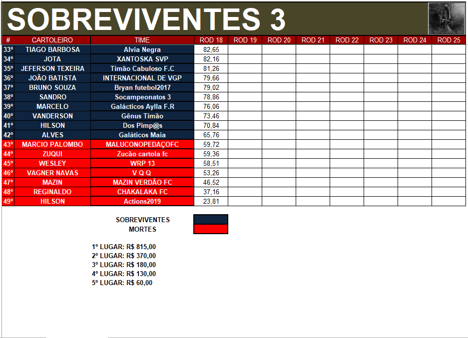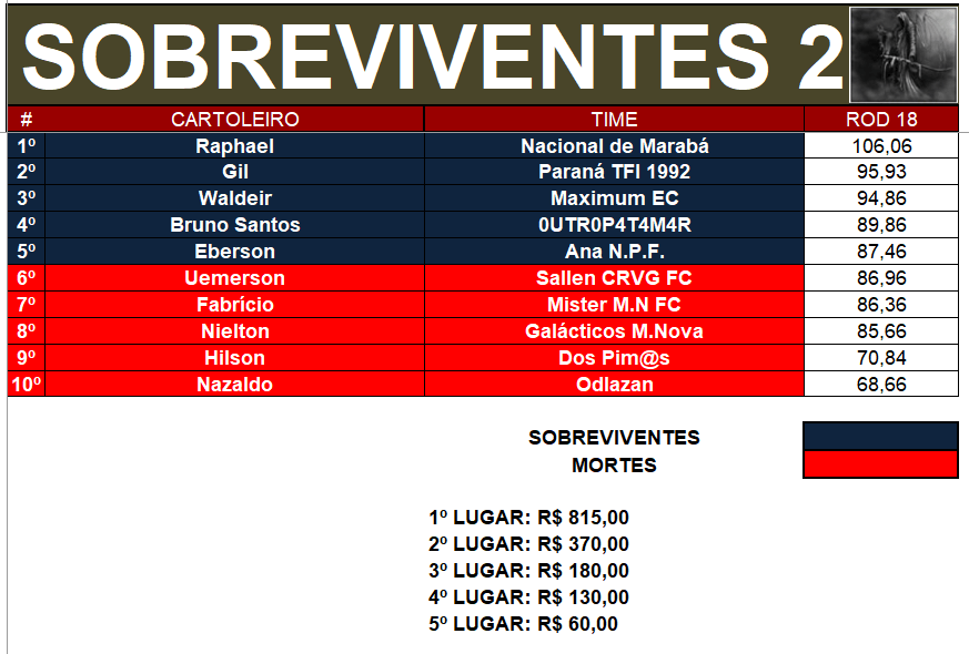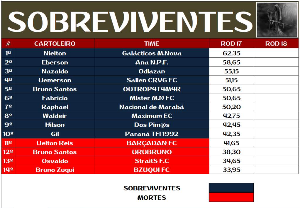SOBREVIVENTES DA TEMPORADA – RODADA 18