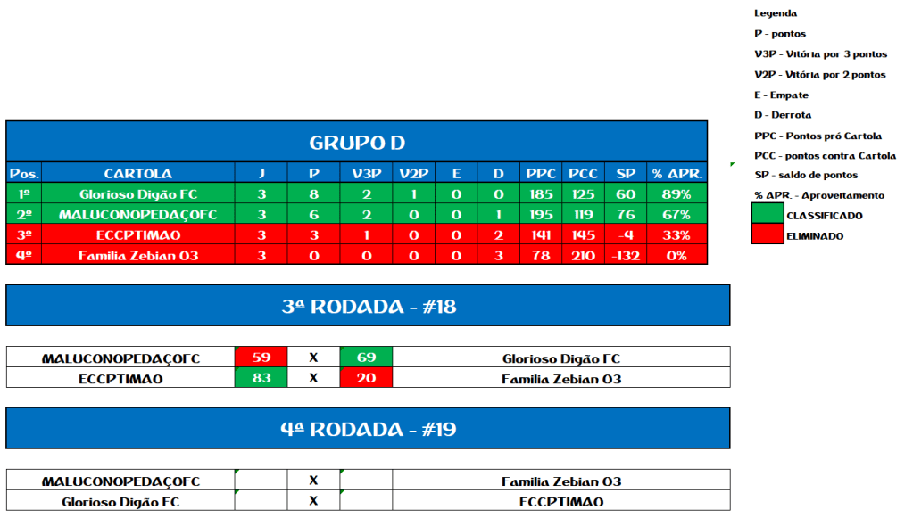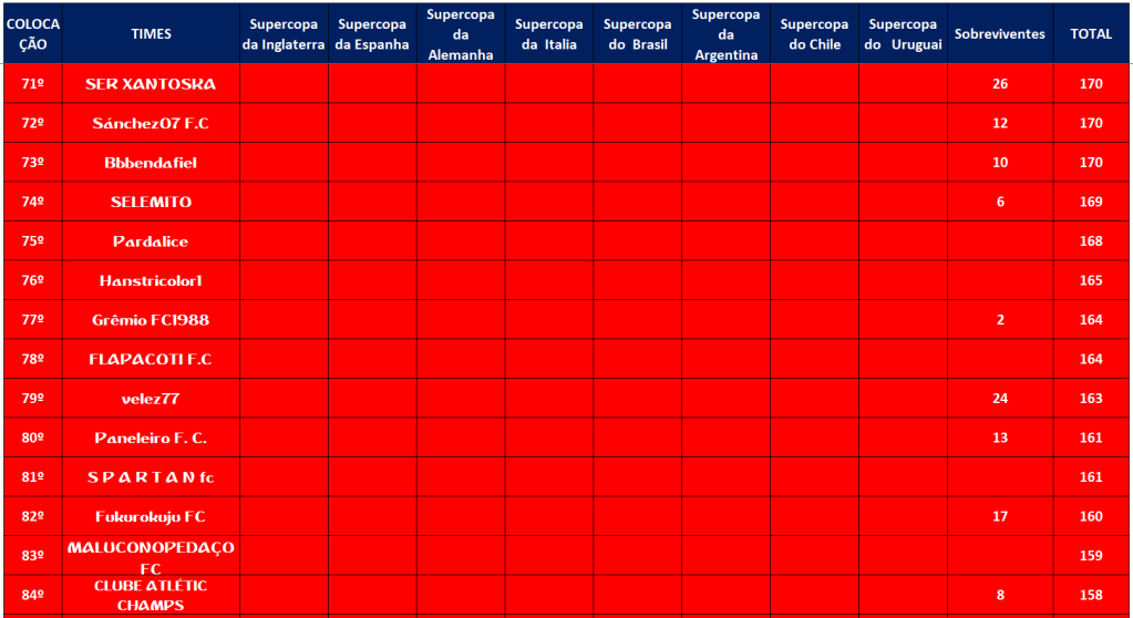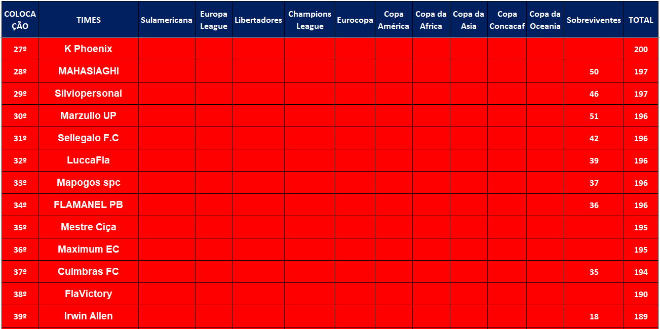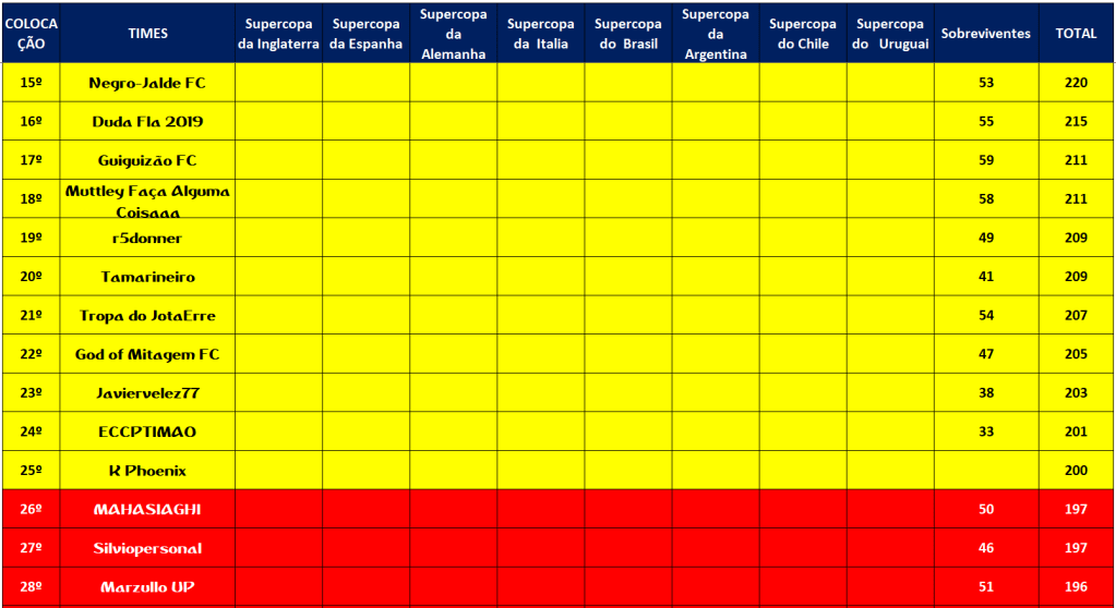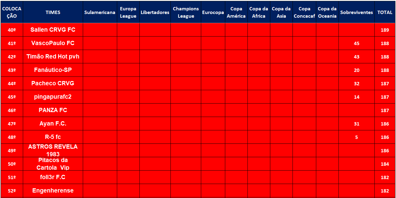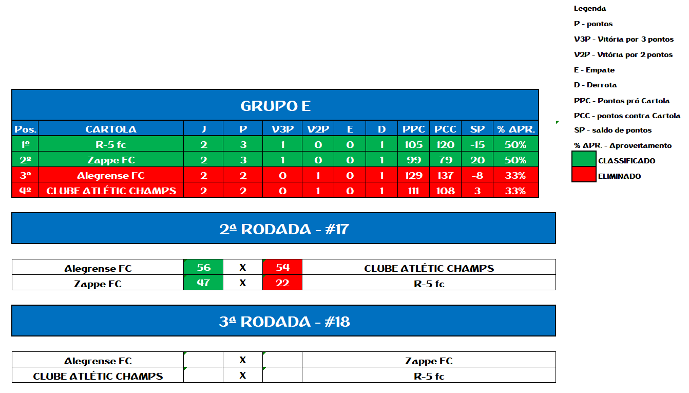 SOBREVIVENTES DA TEMPORADA – RODADA 18