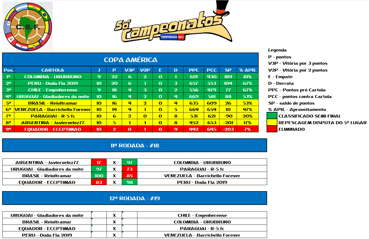 CLASSIFICAÇÃO DISPUTAS DOS CAMPEONATOS