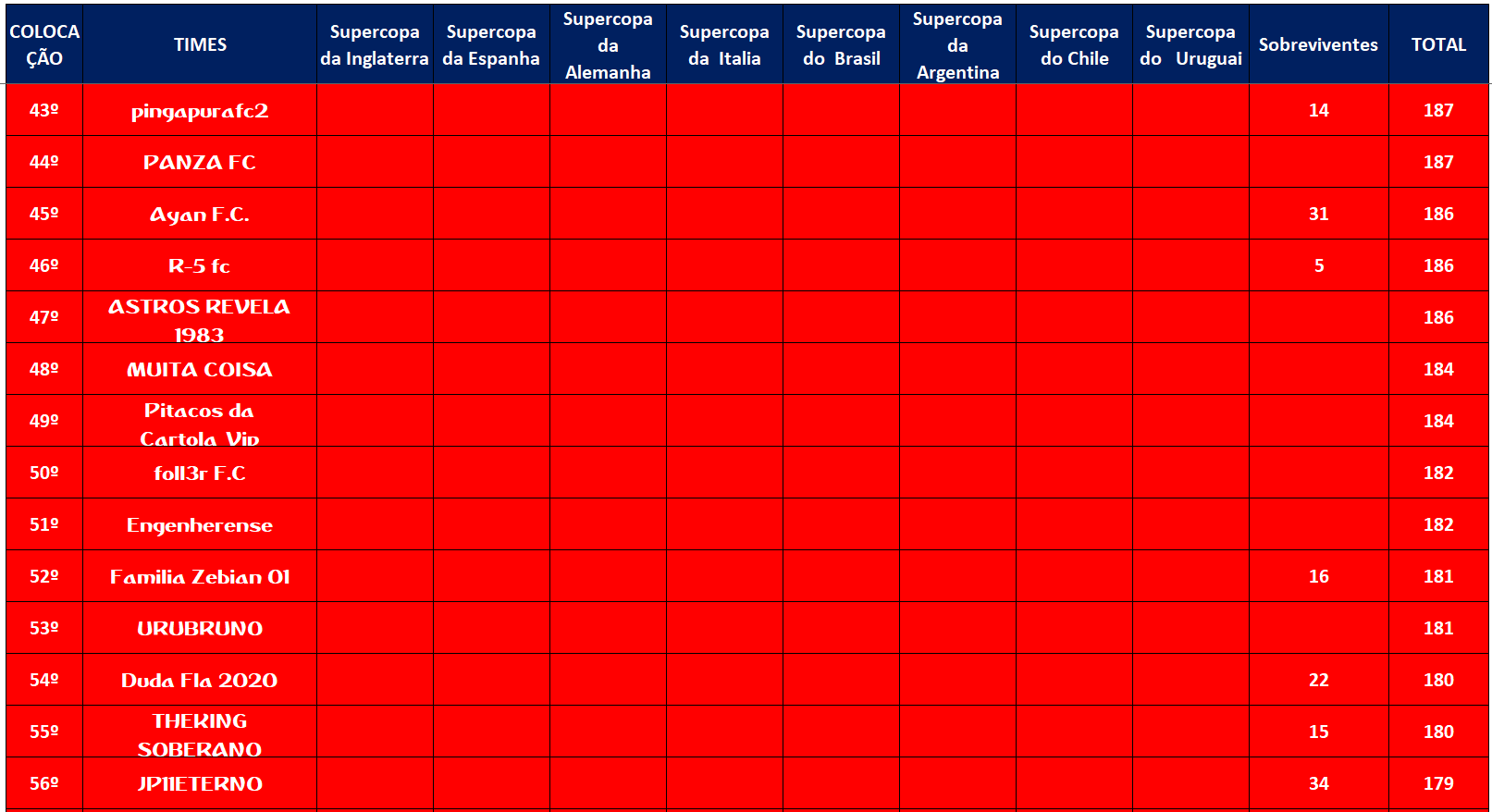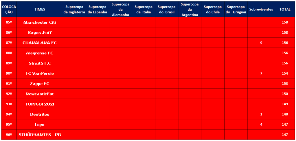 SUPERCOPA INGLESA CLASSIFICAÇÃO