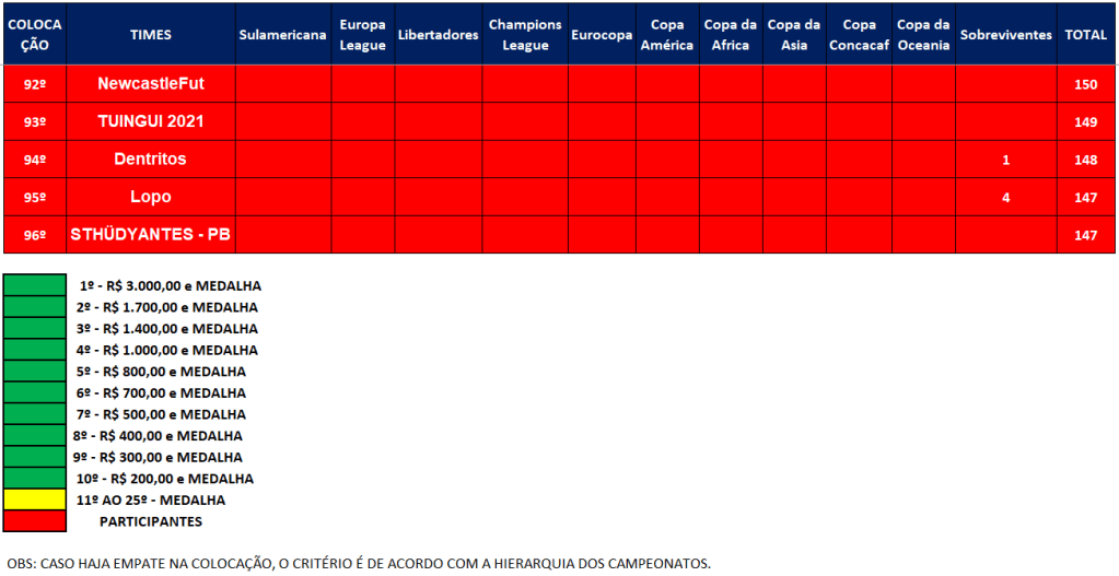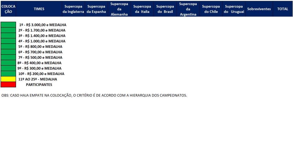 REGULAMENTO – O MAIOR CAMPEONATOS DA HISTÓRIA