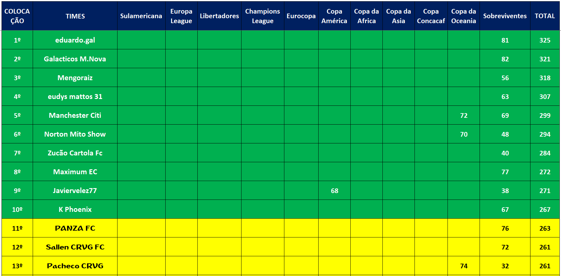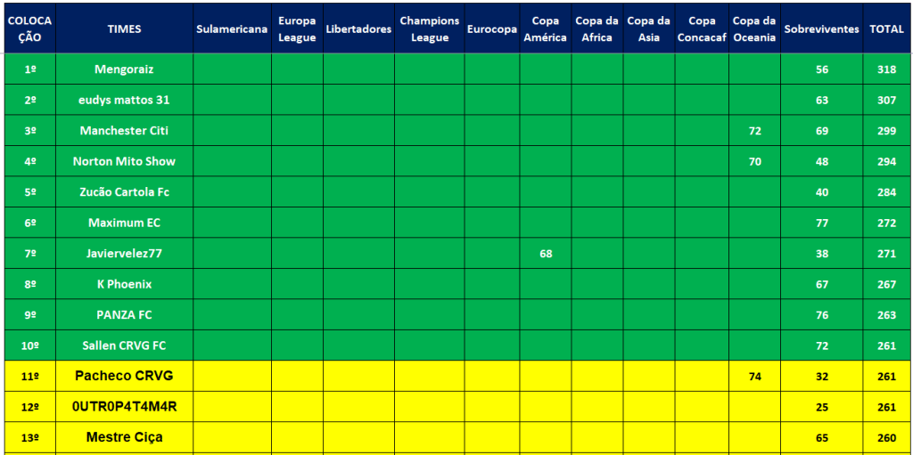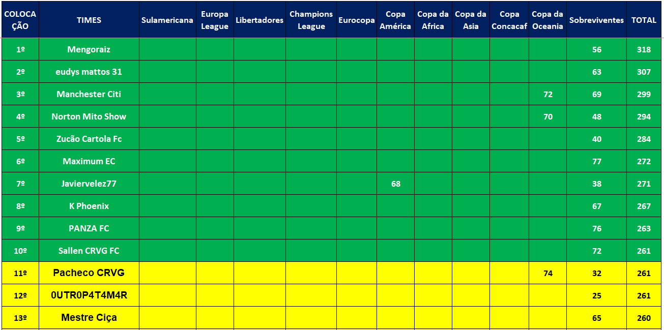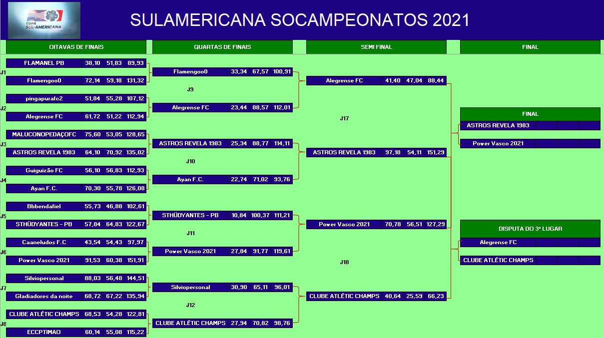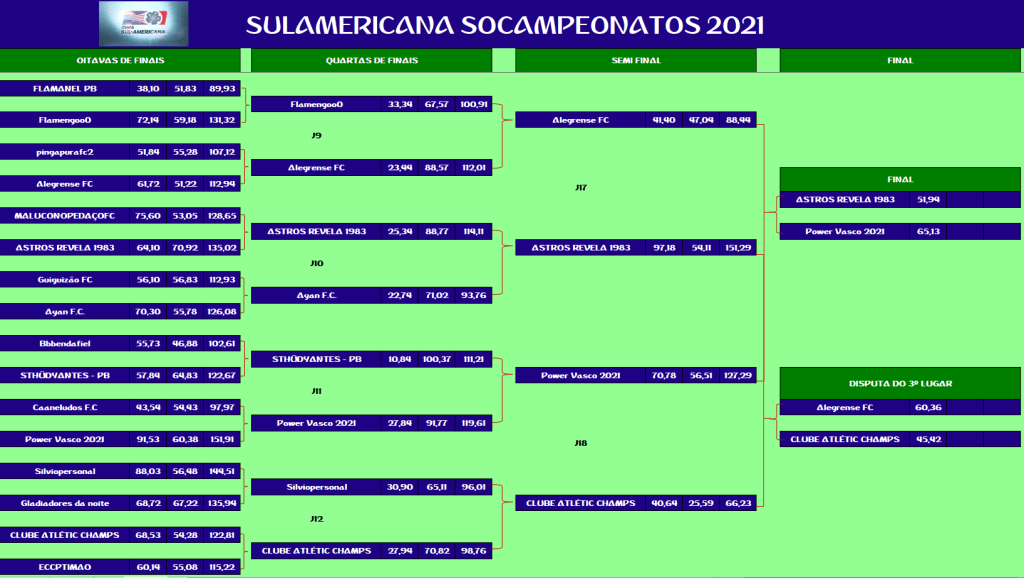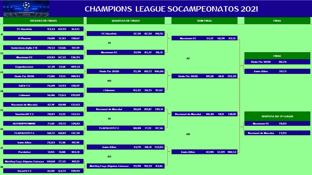 CHAMPIONS LEAGUE – FINAL E DISPUTA DO 3º, 5º, 7º, 9º, 11º, 13º, 15º LUGAR – IDA Publicado em 26/10/2021 por socampeonatos