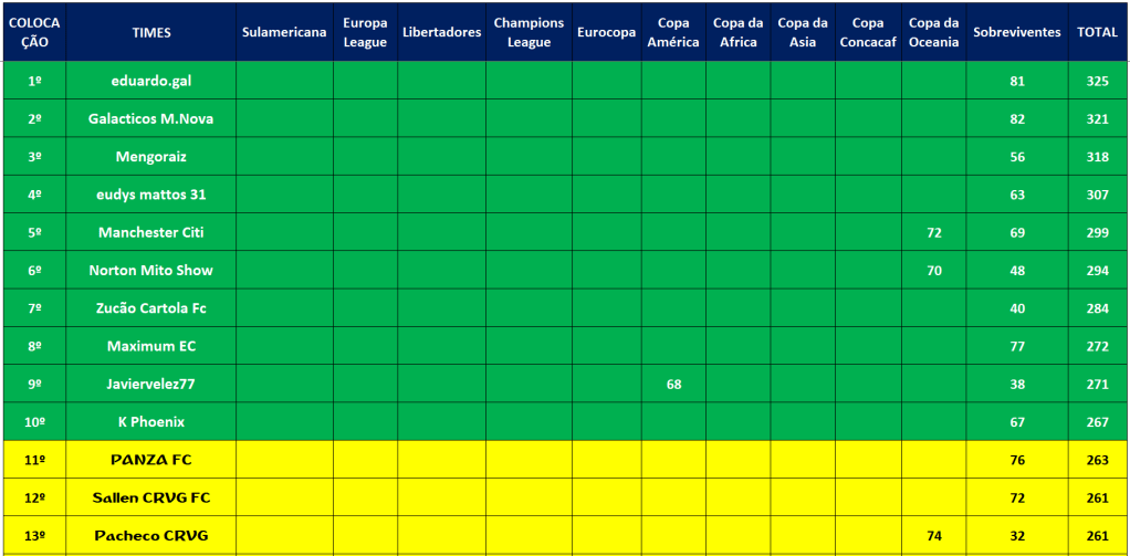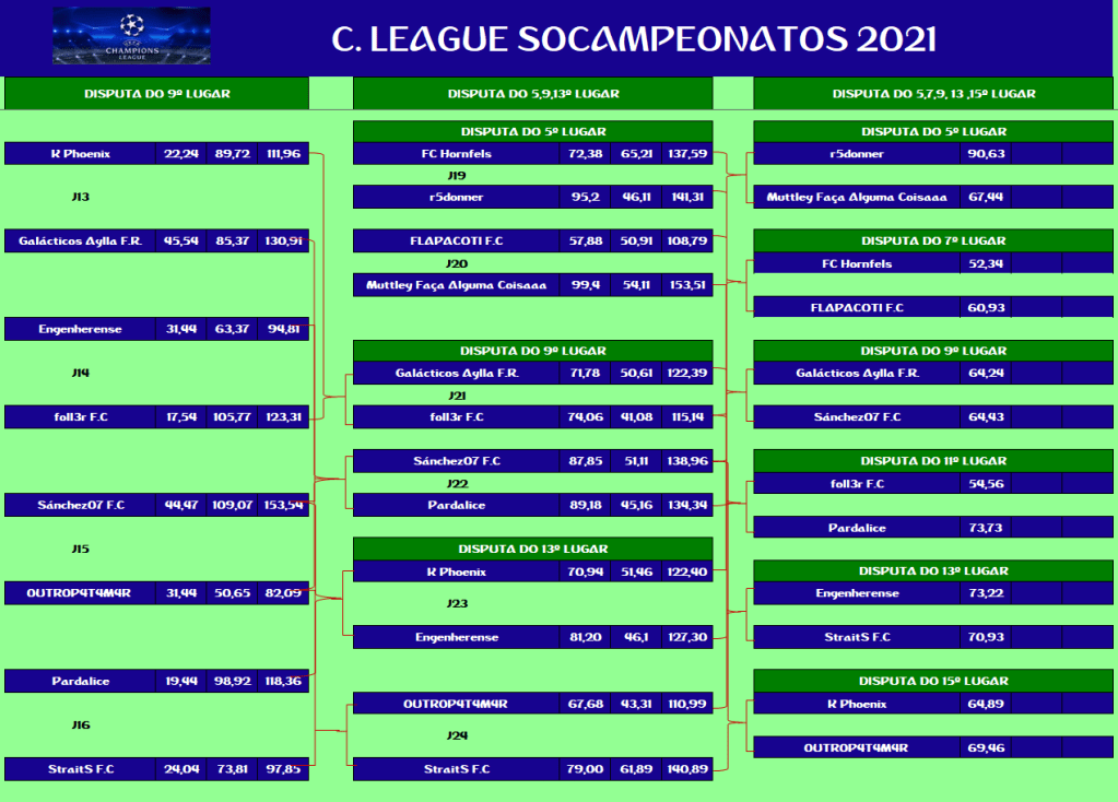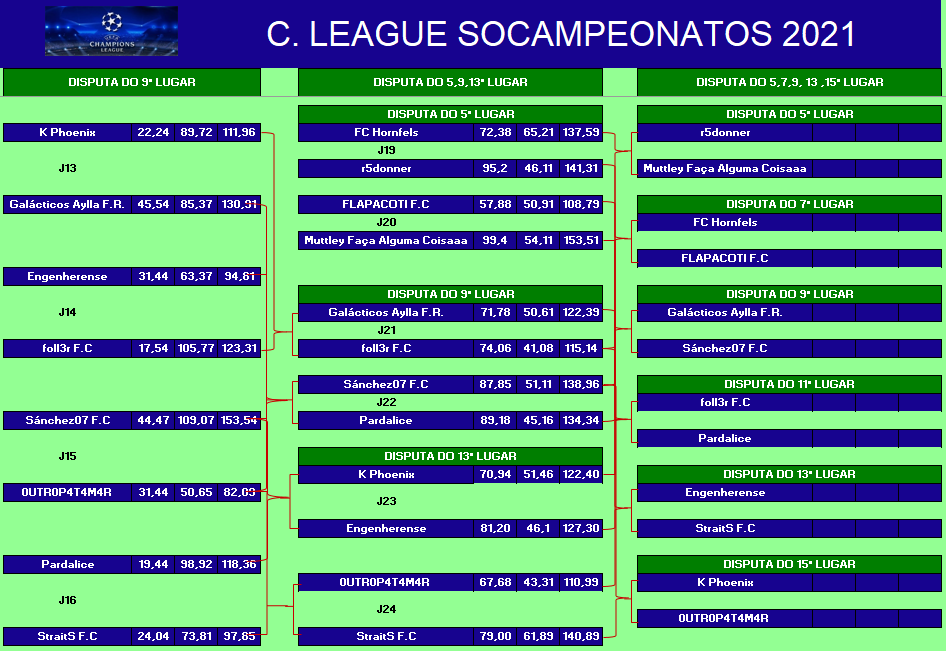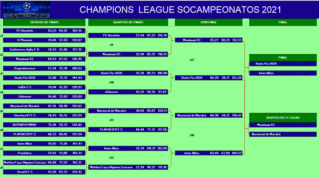 CHAMPIONS LEAGUE – – SEMI FINAL E DISPUTA DO 5º, 9º, 13º LUGAR – VOLTA Publicado em 19/10/2021 por socampeonatos
