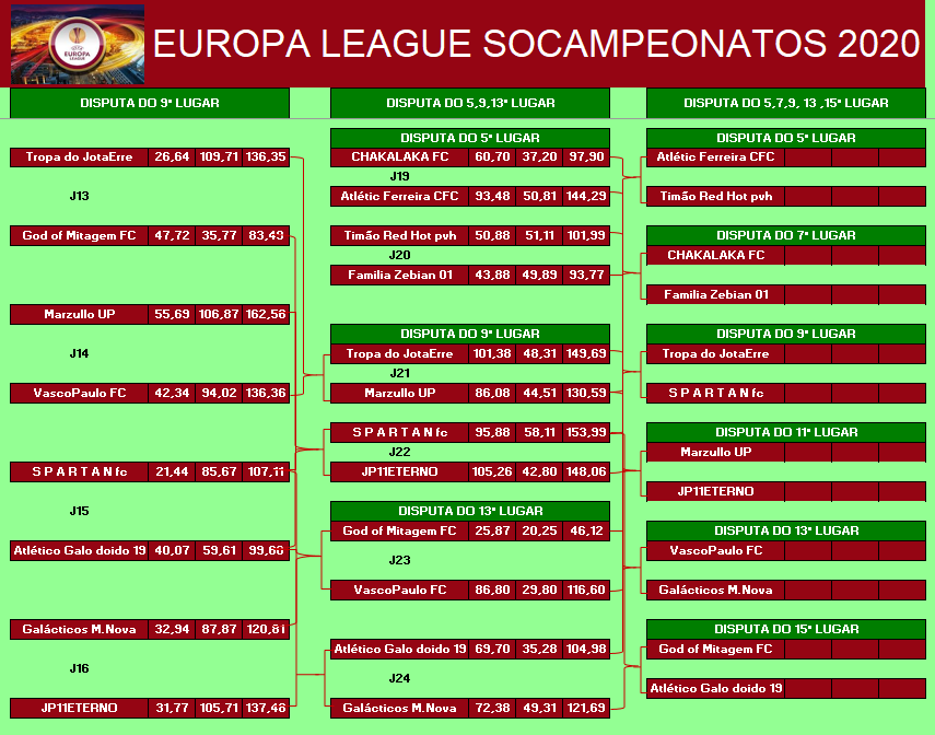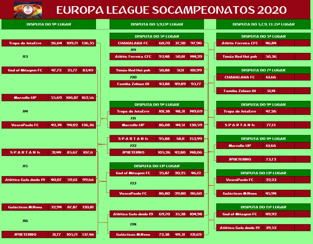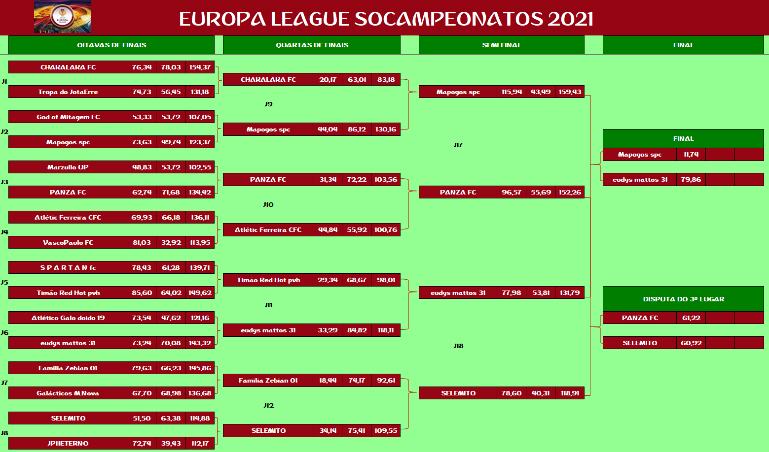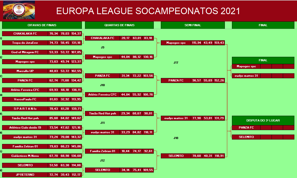 EUROPA LEAGUE – FINAL E DISPUTA DO 3º, 5º, 7º, 9º, 11º, 13º, 15º LUGAR – IDA Publicado em 26/10/2021 por socampeonatos