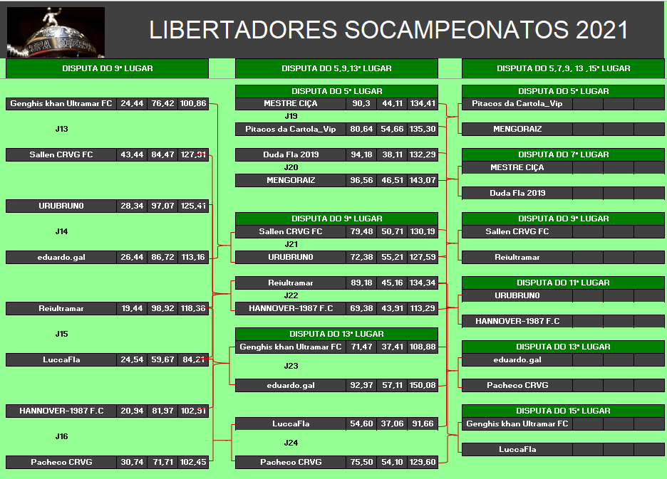 LIBERTADORES DA AMÉRICA – SEMI FINAL E DISPUTA DO 5º, 9º, 13º LUGAR – VOLTA Publicado em 19/10/2021 por socampeonatos