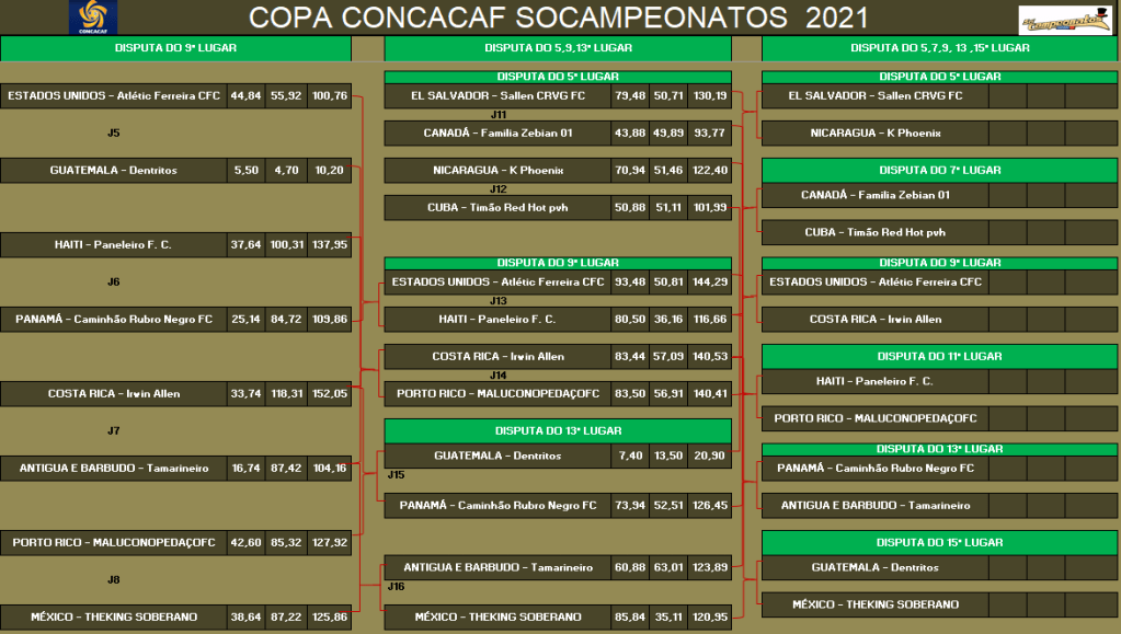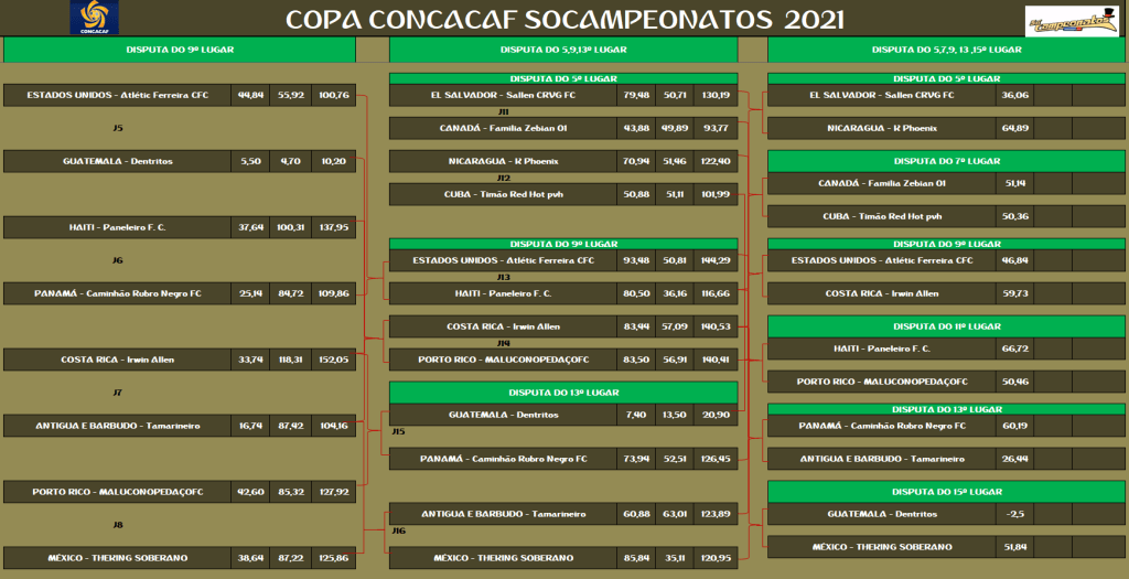COPA CONCACAF – SEMI FINAL E DISPUTA DO 5º, 9º, 13º LUGAR – VOLTA Publicado em 19/10/2021 por socampeonatos