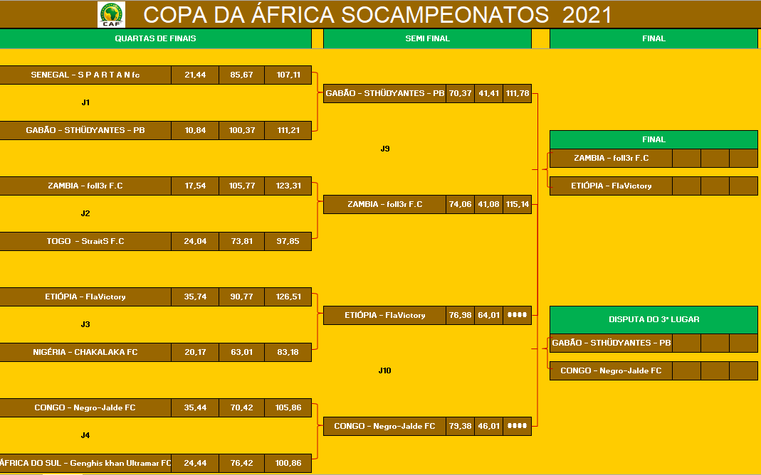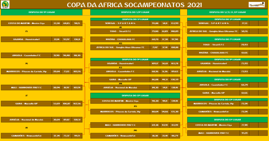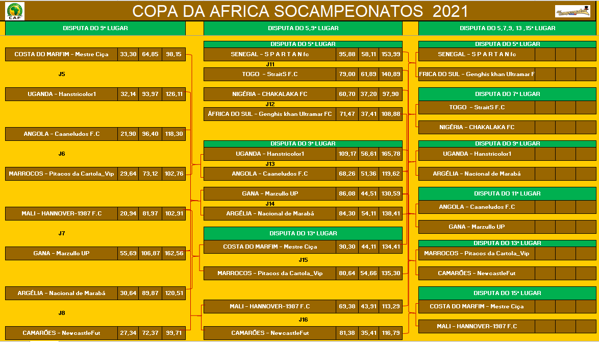 COPA DA ÁFRICA – SEMI FINAL E DISPUTA DO 5º, 9º, 13º LUGAR – VOLTA Publicado em 19/10/2021 por socampeonatos