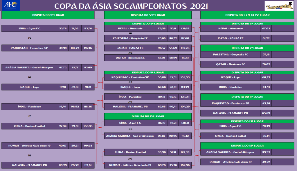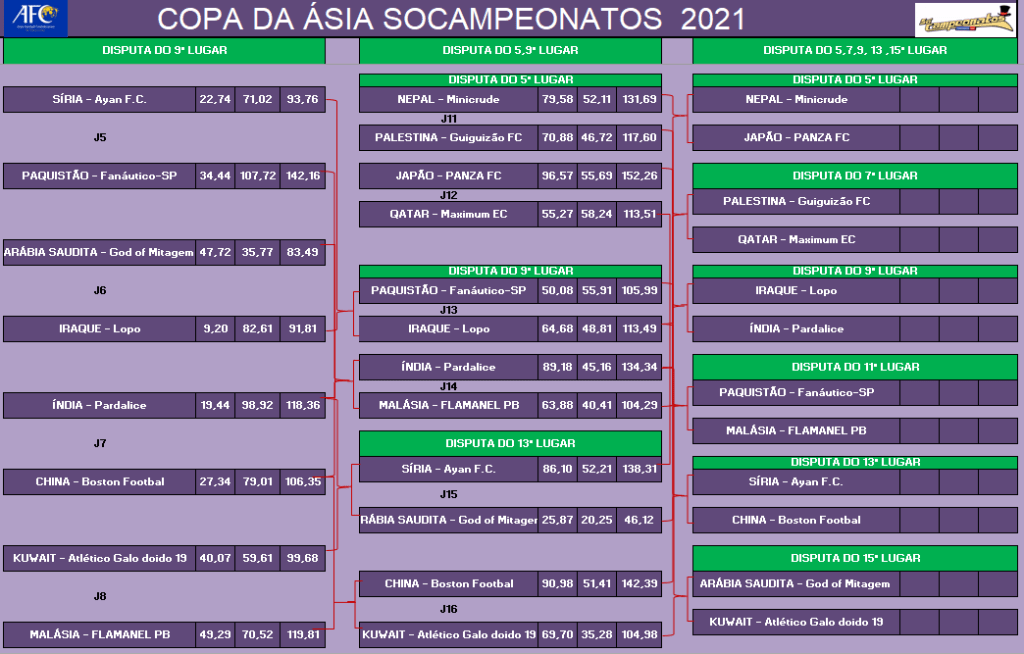 COPA DA ÁSIA – SEMI FINAL E DISPUTA DO 5º, 9º, 13º LUGAR – VOLTA Publicado em 19/10/2021 por socampeonatos