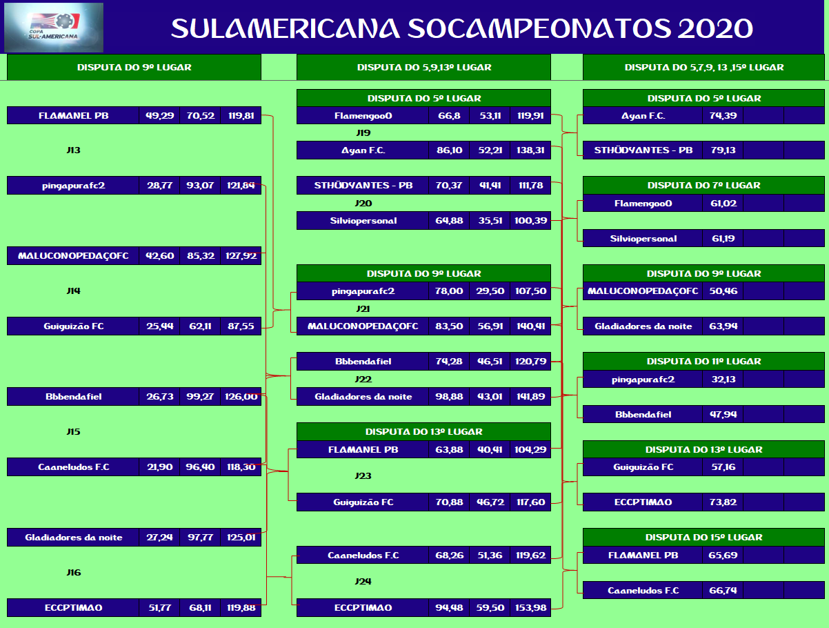 COPA SULAMERICANA – SEMI FINAL E DISPUTA DO 5º, 9º, 13º LUGAR – VOLTA Publicado em 19/10/2021 por socampeonatos