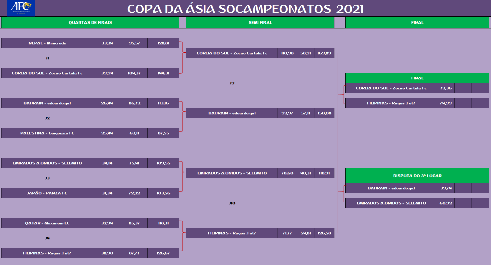 COPA DA ÁSIA – FINAL E DISPUTA DO 3º, 5º, 7º, 9º, 11º, 13º, 15º LUGAR – IDA Publicado em 26/10/2021 por socampeonatos