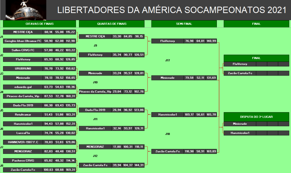 LIBERTADORES DA AMÉRICA – FINAL E DISPUTA DO 3º, 5º, 7º, 9º, 11º, 13º, 15º LUGAR – IDA Publicado em 26/10/2021 por socampeonatos