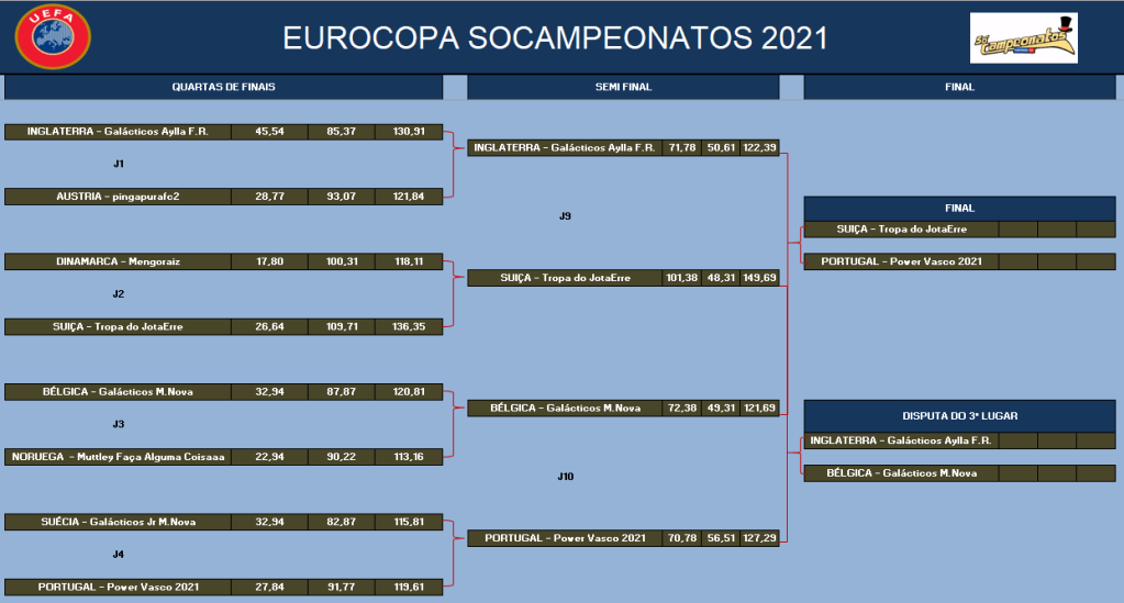 EUROCOPA – FINAL E DISPUTA DO 3º, 5º, 7º, 9º, 11º, 13º, 15º LUGAR – IDA Publicado em 26/10/2021 por socampeonatos