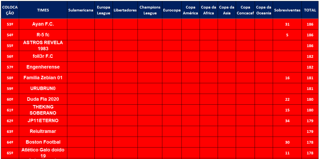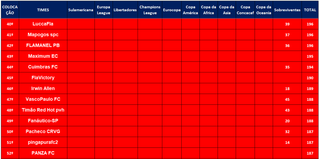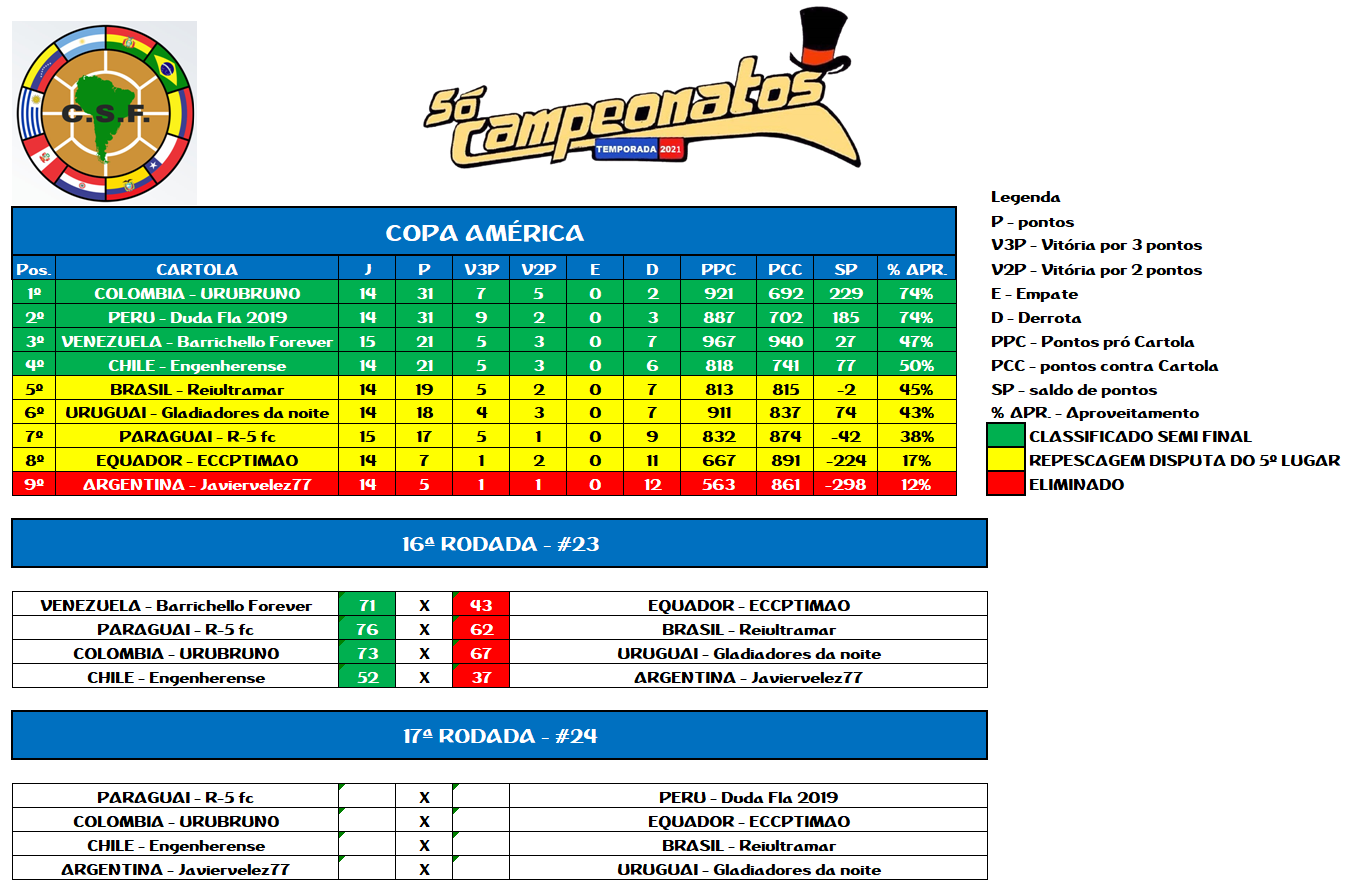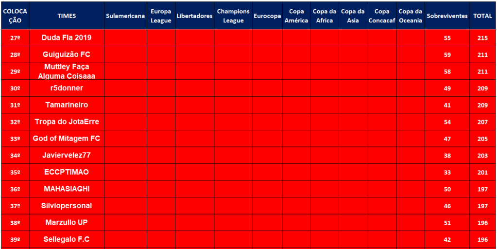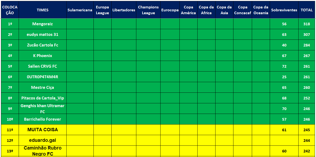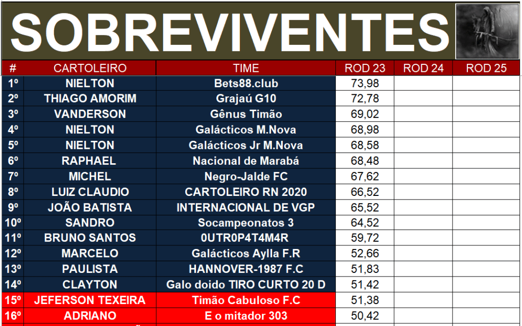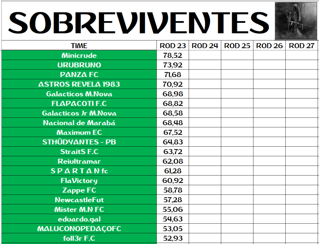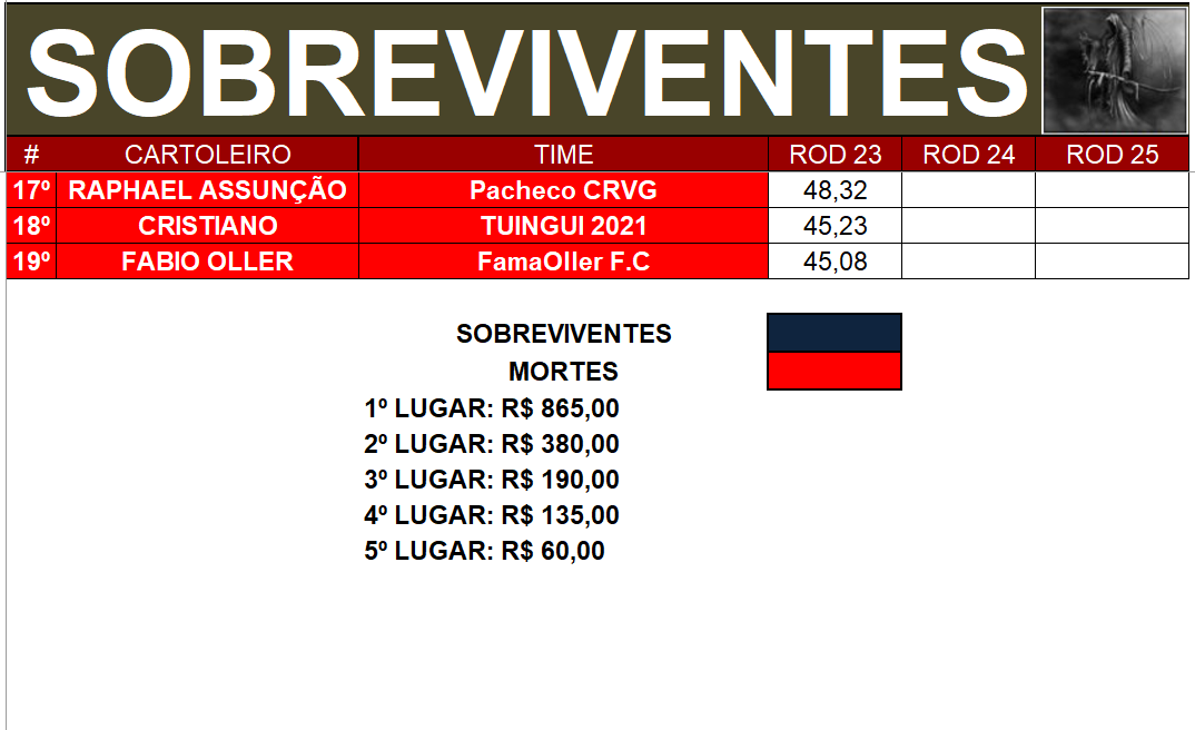 SOBREVIVENTES DA TEMPORADA – RODADA 23