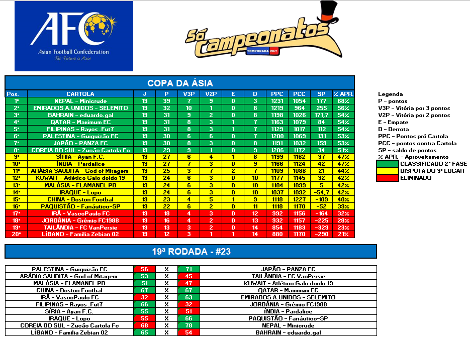 COPA DA ÁSIA – ÚLTIMA RODADA