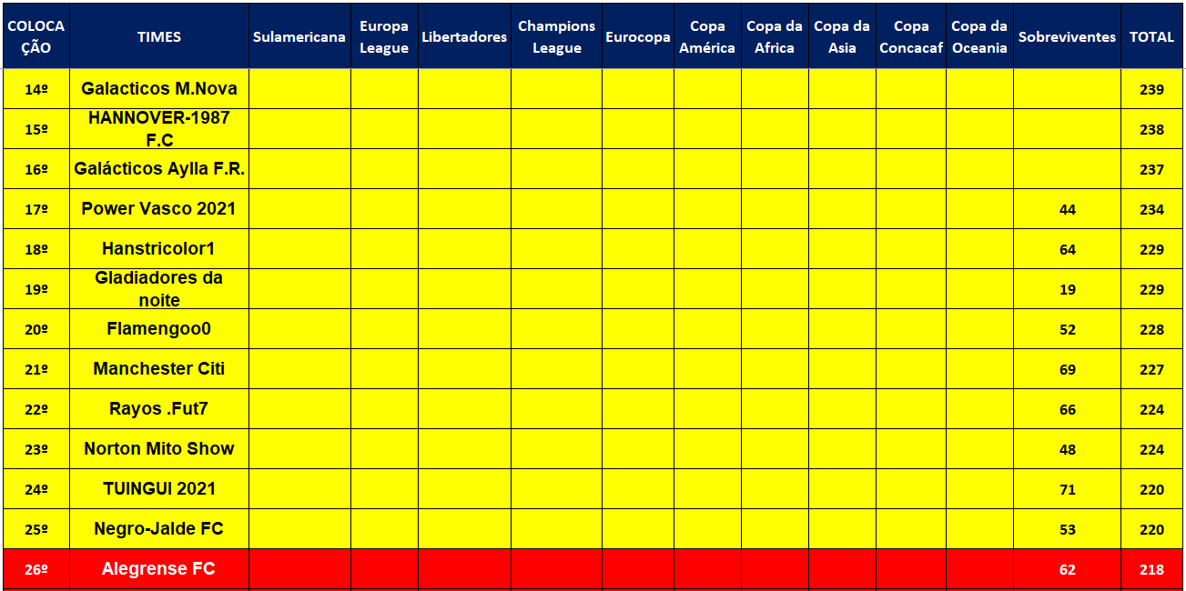 CLASSIFICAÇÃO SUPERCOPA MUNDIAL