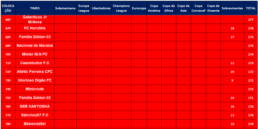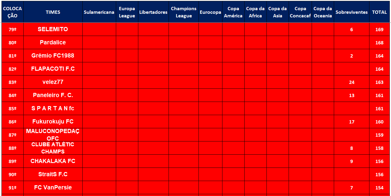 CLASSIFICAÇÃO – O MAIOR CAMPEONATOS DA HISTÓRIA