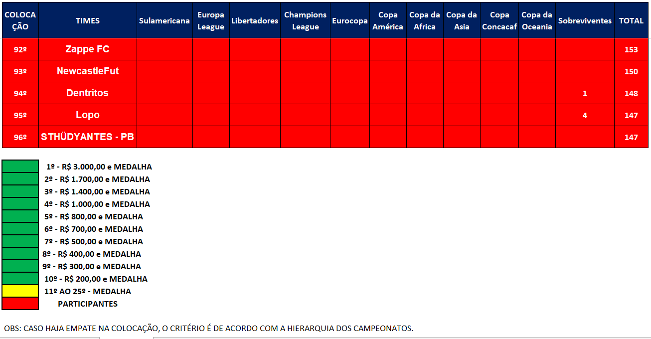 CLASSIFICAÇÃO DISPUTAS DOS CAMPEONATOS