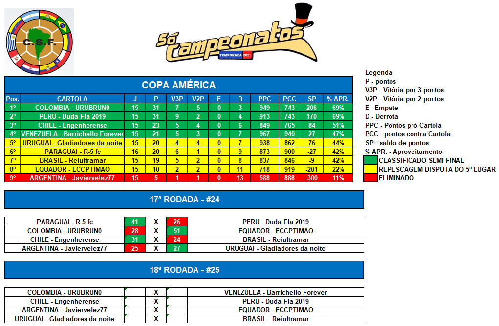 • CLASSIFICAÇÃO COPA DO URUGUAI