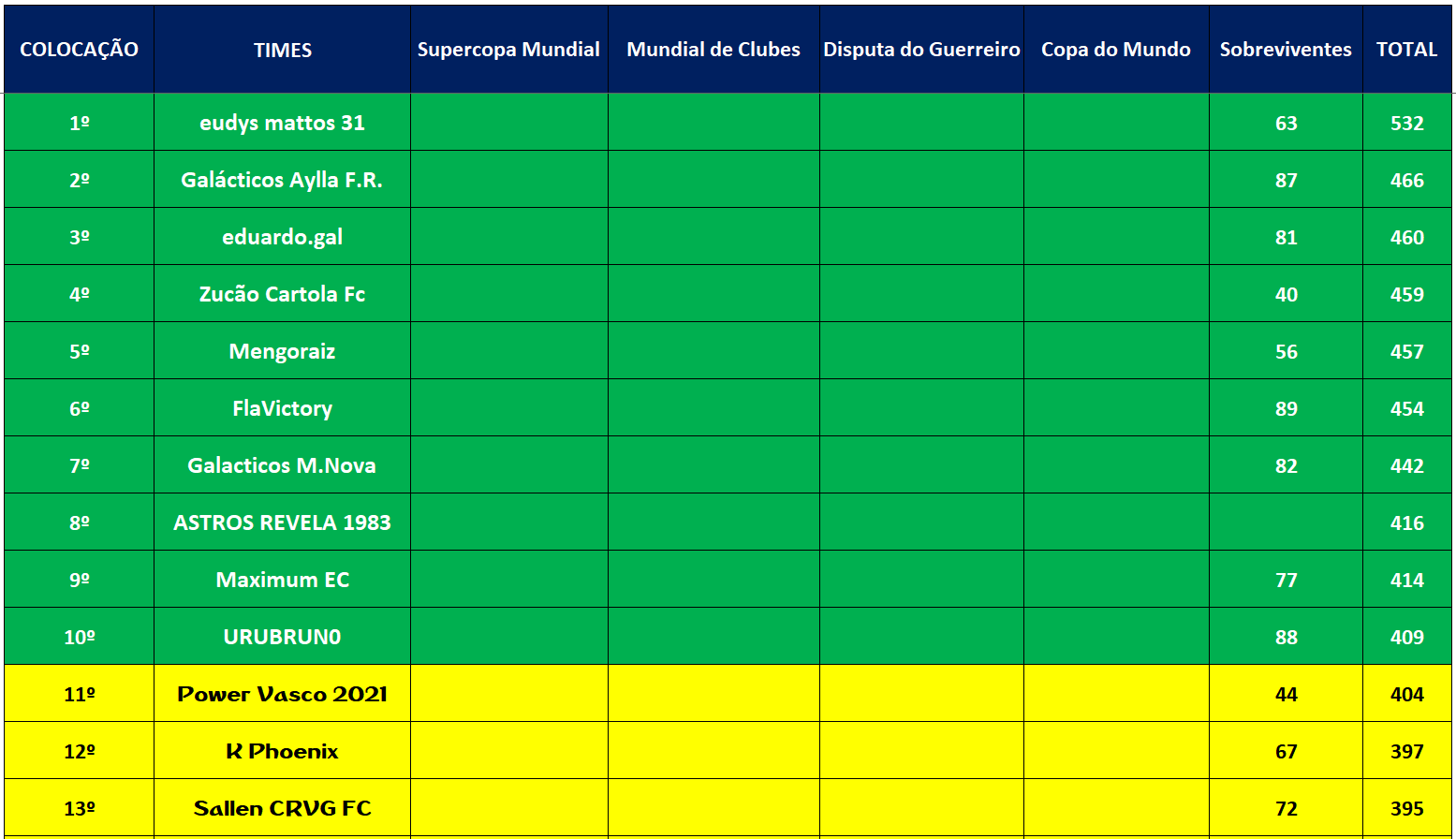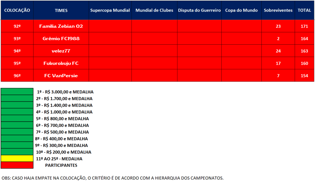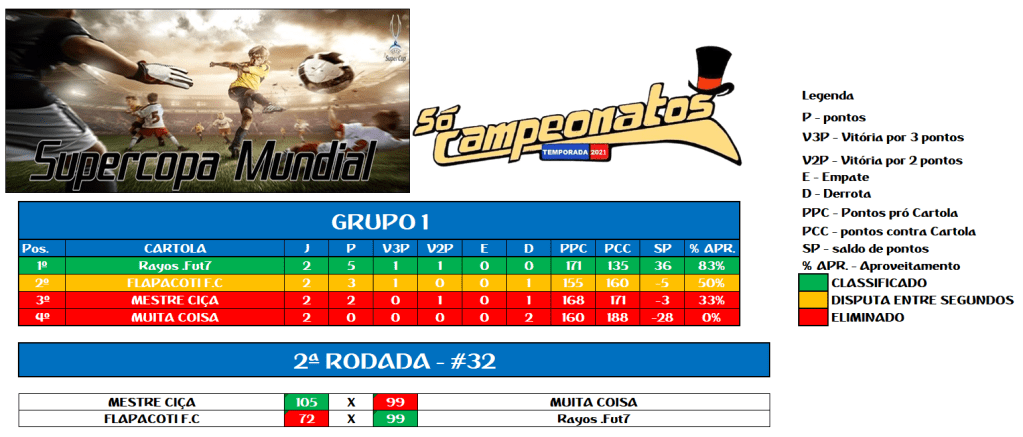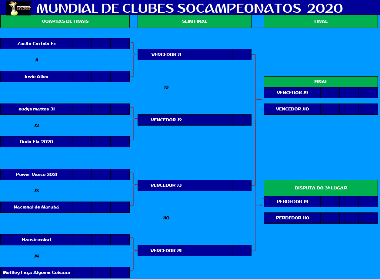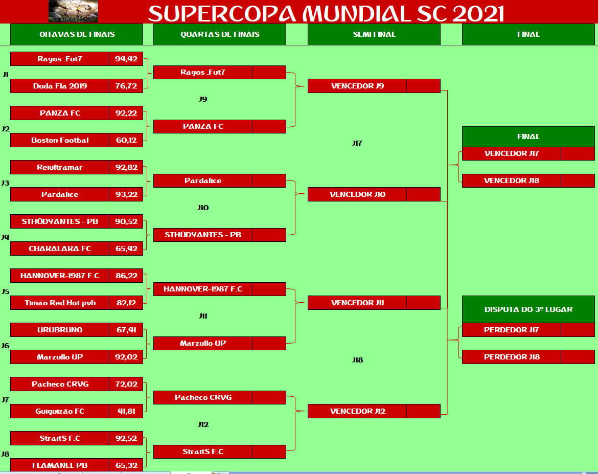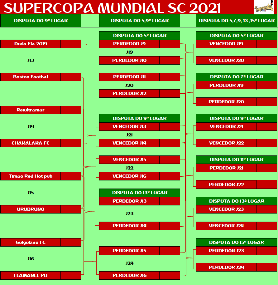 SUPERCOPA MUNDIAL – QUARTAS DE FINAIS E DISPUTA DO 9º LUGAR – JOGO ÚNICO Publicado em 26/11/2021 por socampeonatos