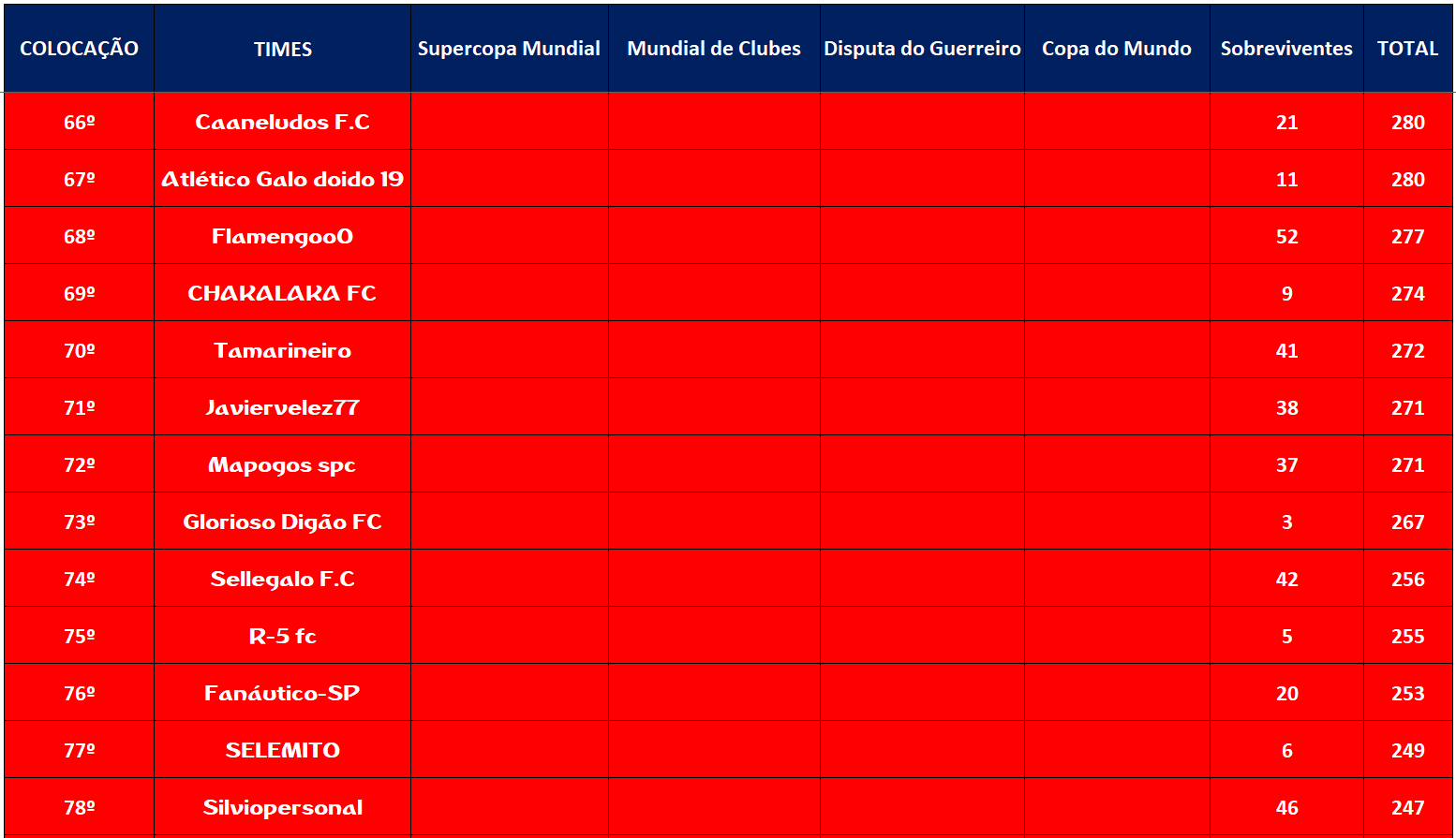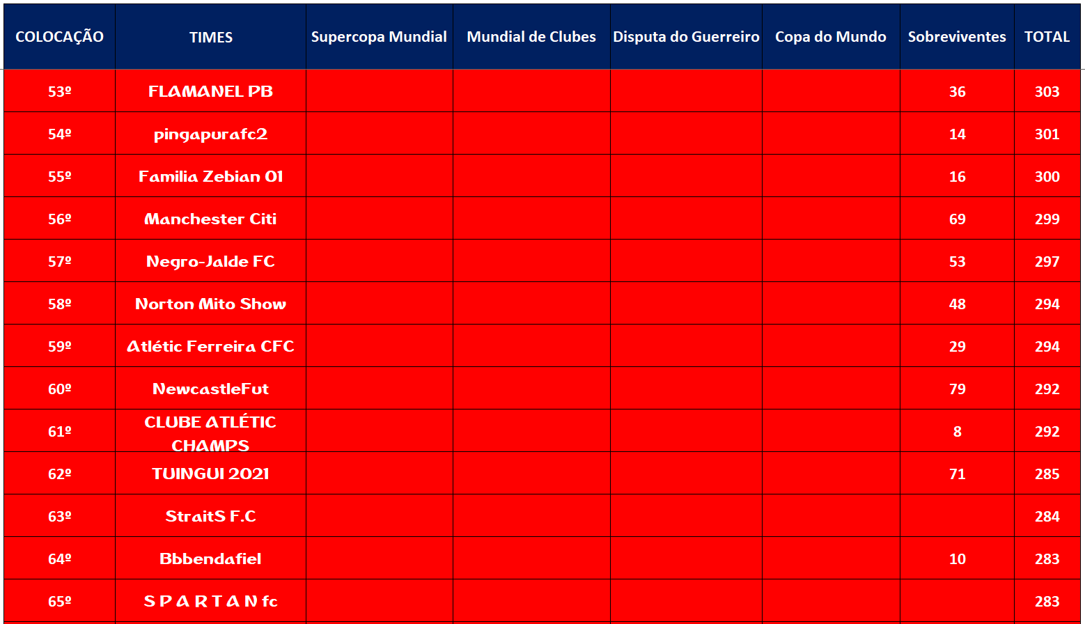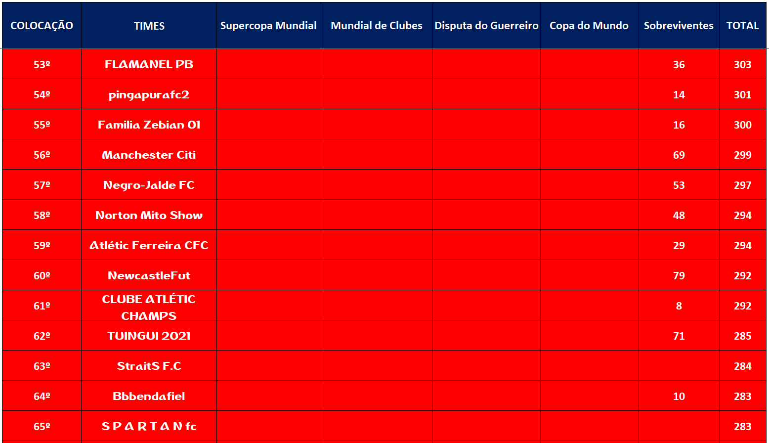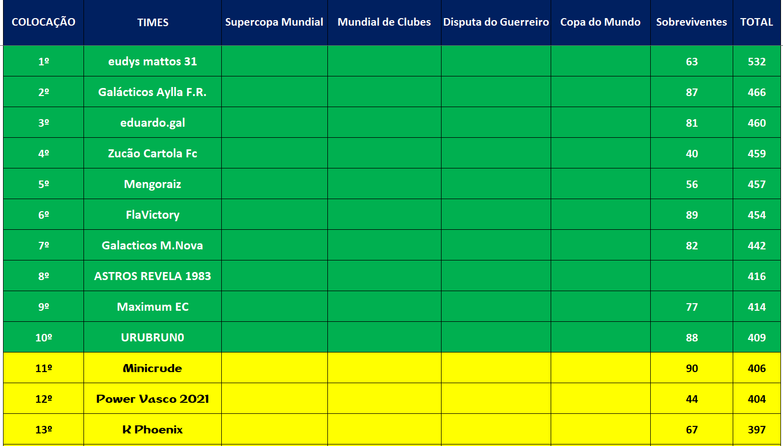 SUPERCOPA MUNDIAL – QUARTAS DE FINAIS E DISPUTA DO 9º LUGAR – JOGO ÚNICO Publicado em 26/11/2021 por socampeonatos