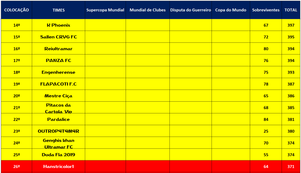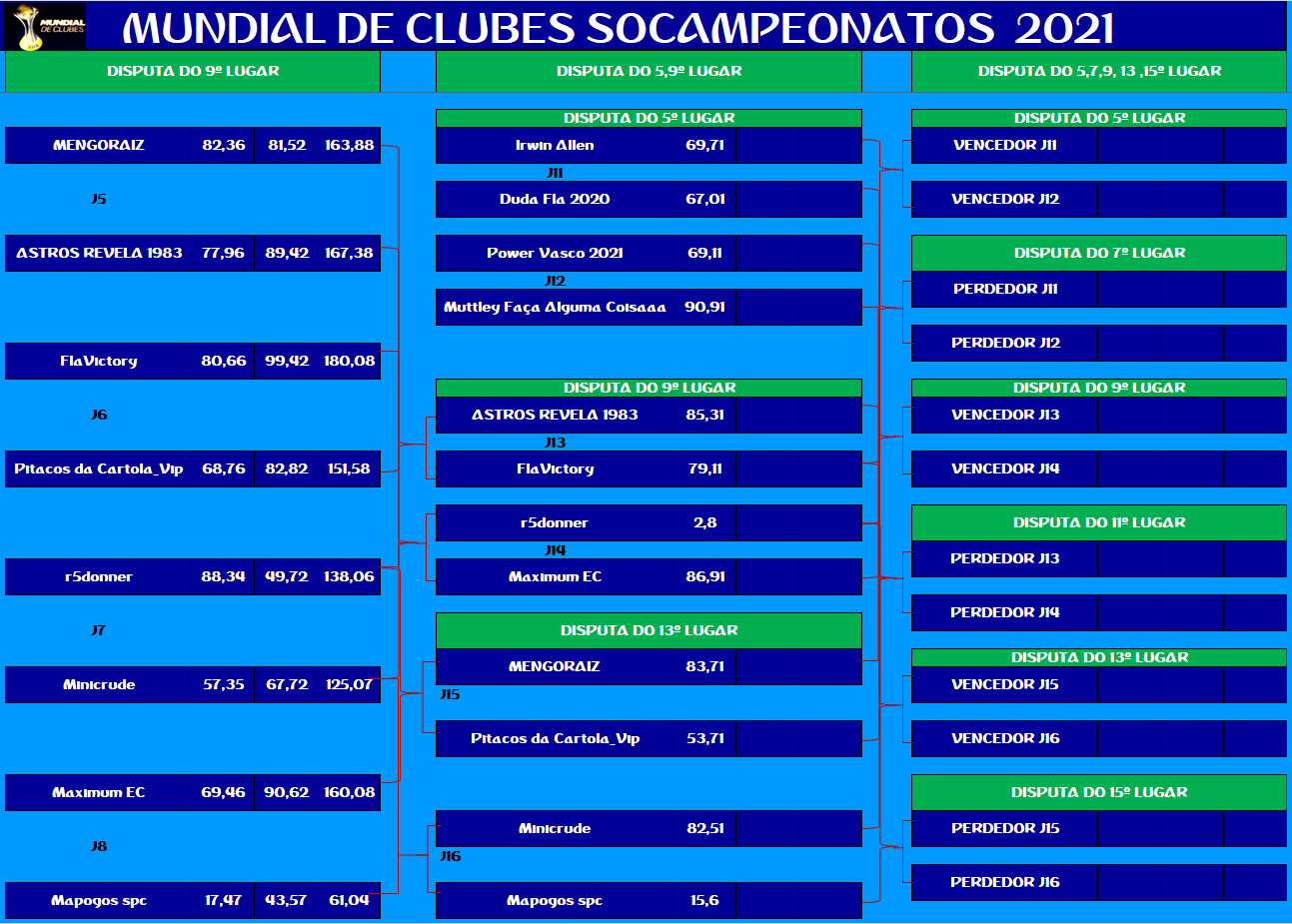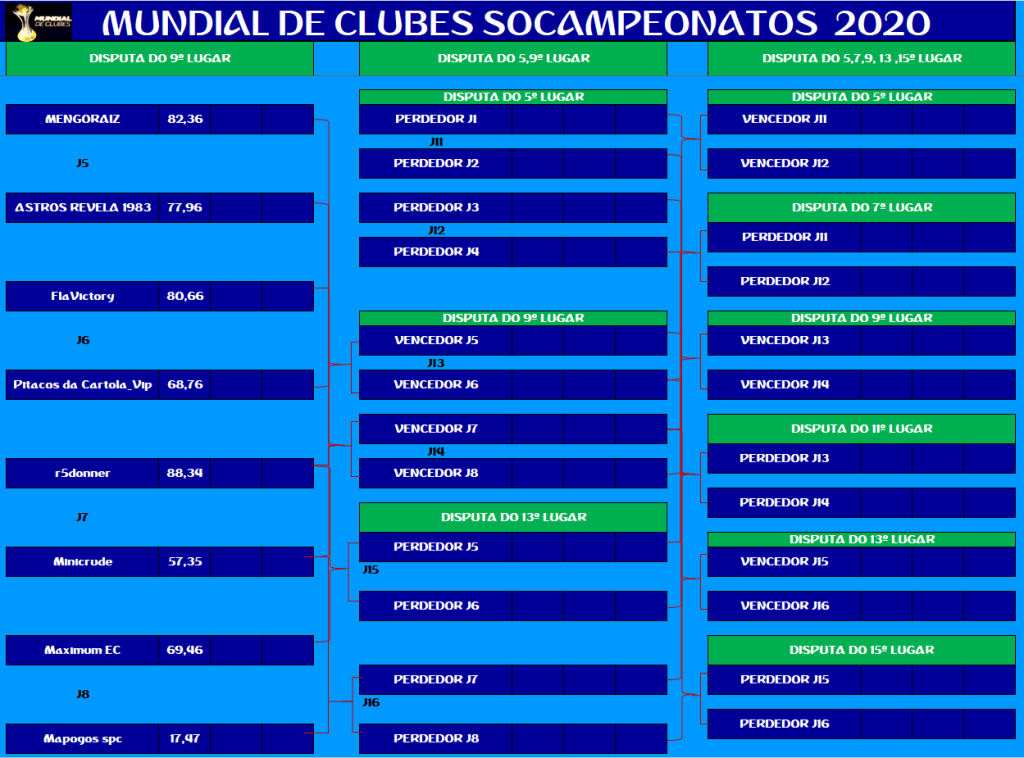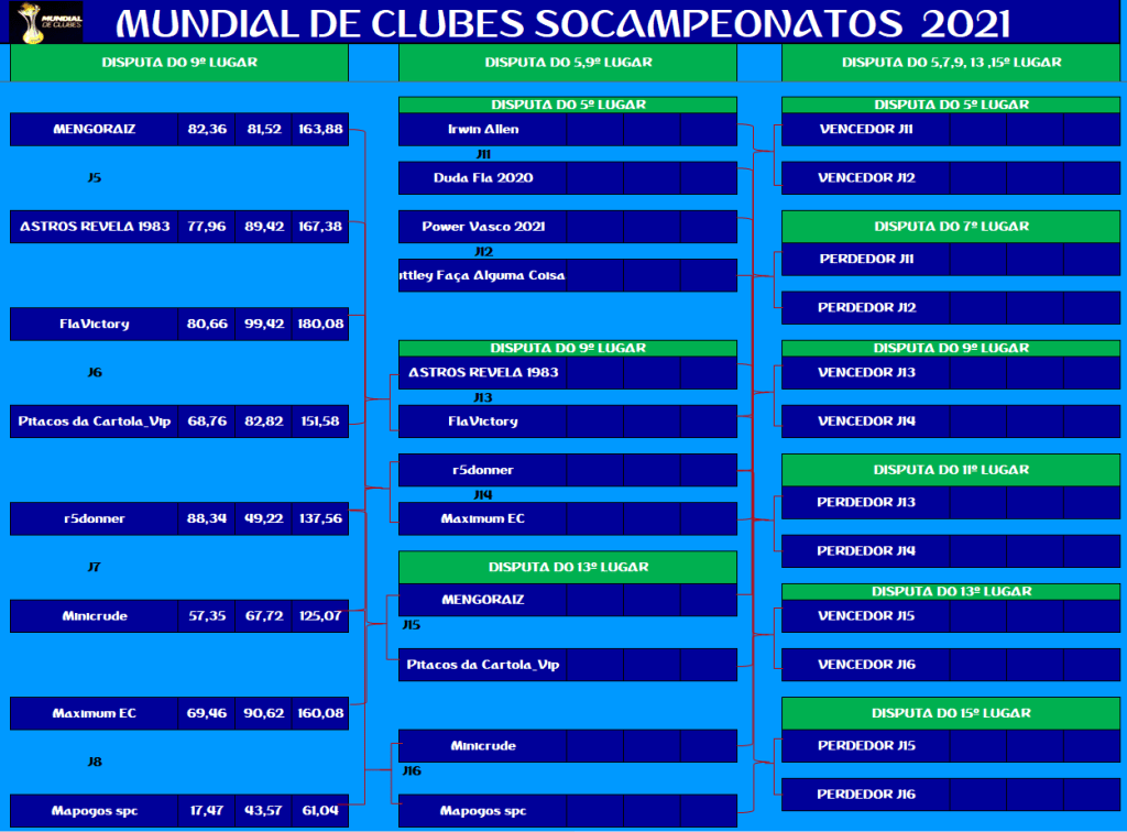 MUNDIAL DE CLUBES – QUARTAS DE FINAIS E DISPUTA DO 9º LUGAR – VOLTA Publicado em 22/11/2021 por socampeonatos