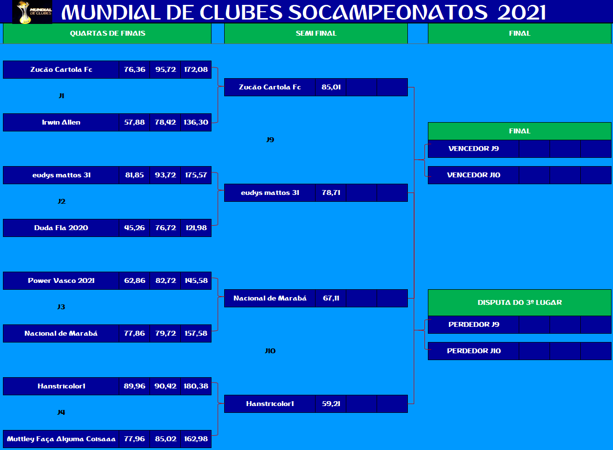MUNDIAL DE CLUBES – SEMI FINAL E DISPUTA DO 5º,9º,13º LUGAR – IDA Publicado em 26/11/2021 por socampeonatos