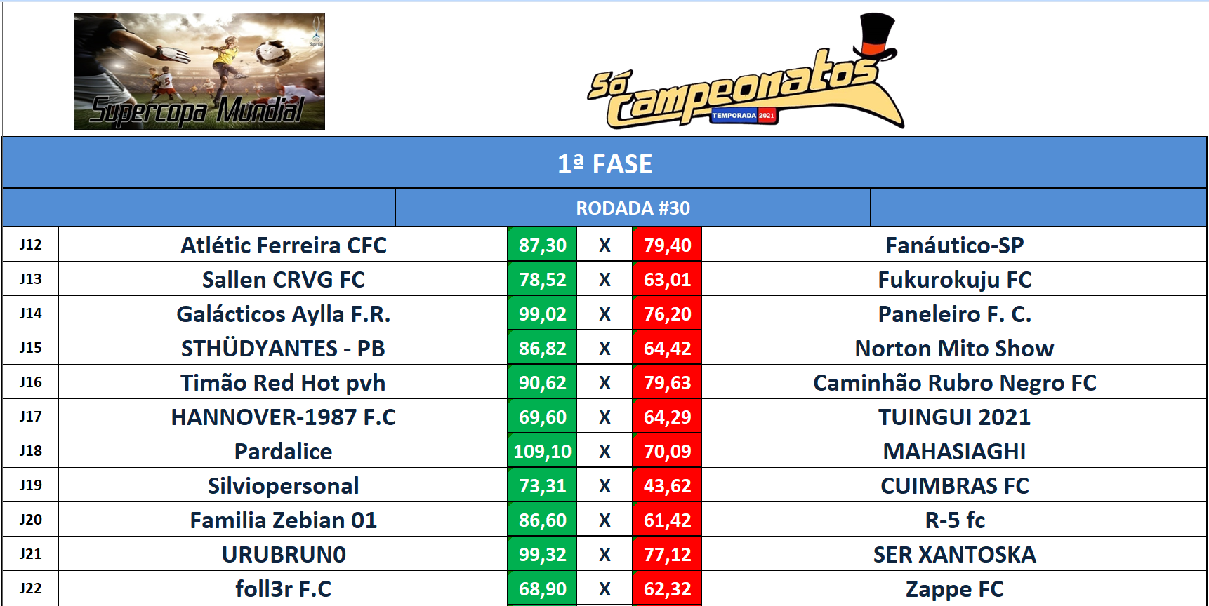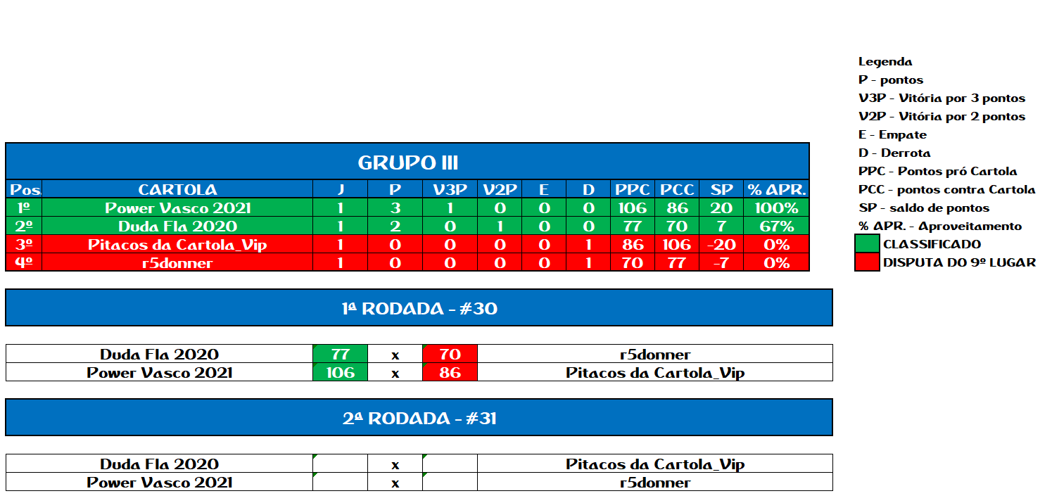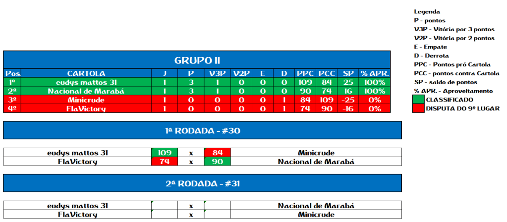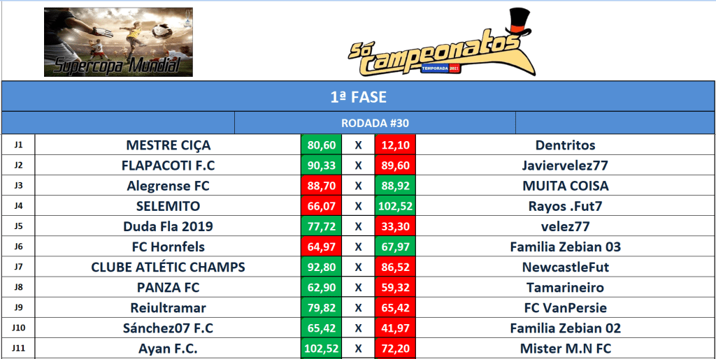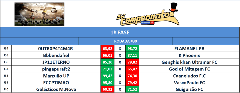 RANKING – RODADA 30