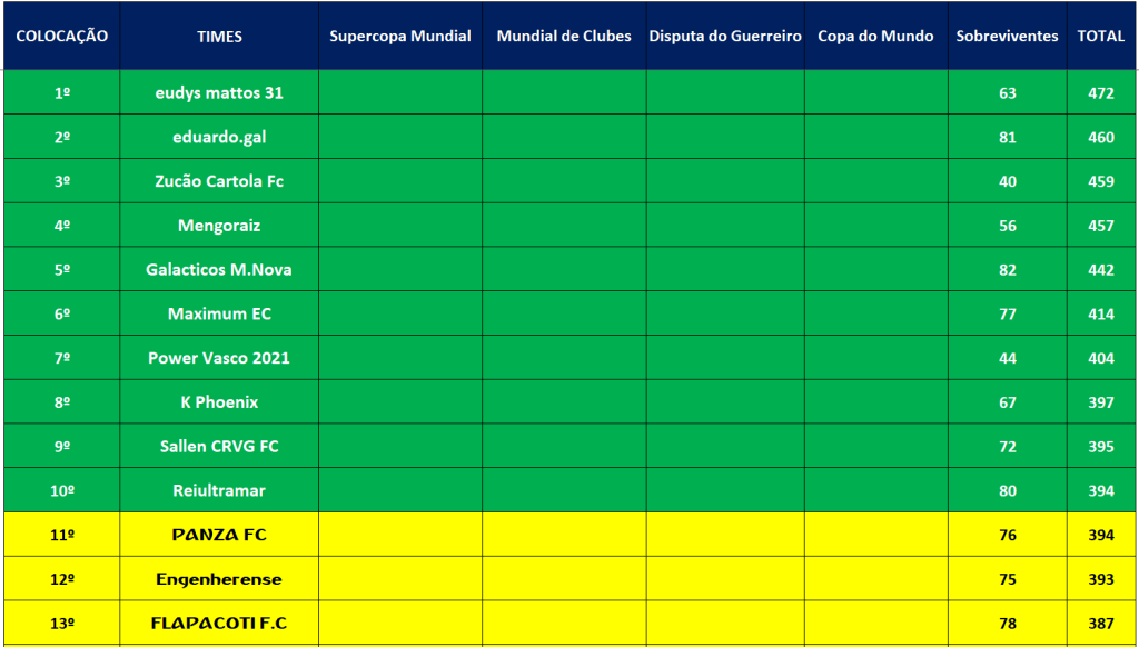 CLASSIFICAÇÃO SUPERCOPA MUNDIAL
