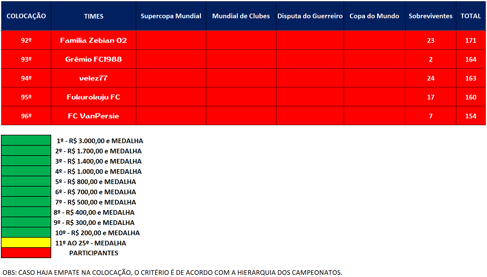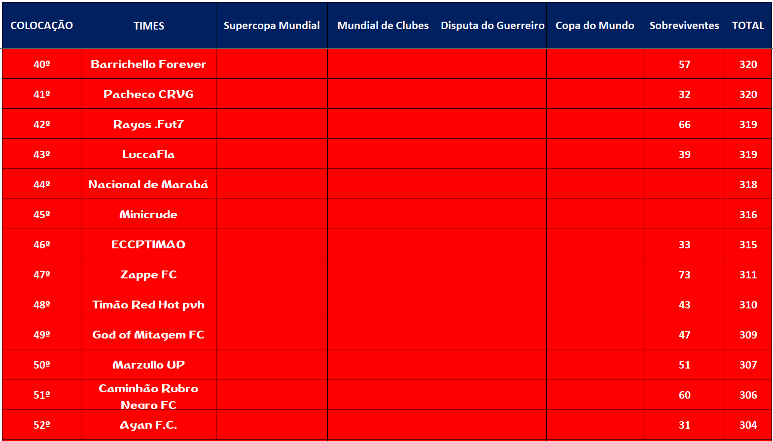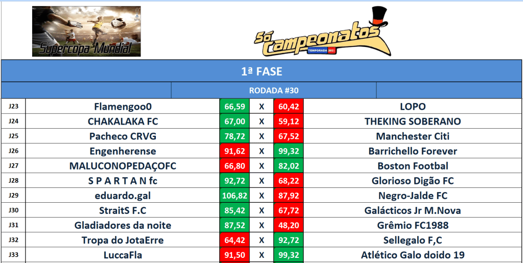 TABELA SUPERCOPA MUNDIAL