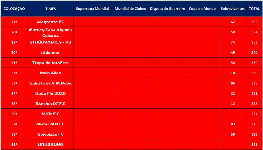 SOBREVIVENTES DA TEMPORADA – RODADA 30