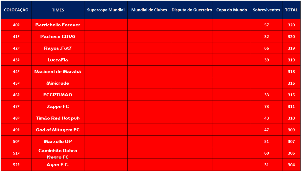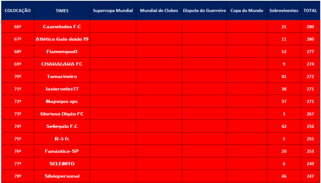 CLASSIFICAÇÃO – O MAIOR CAMPEONATOS DA HISTÓRIA
