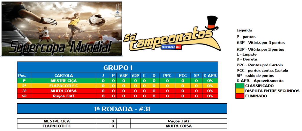 TABELA SUPERCOPA MUNDIAL DE SELEÇÕES