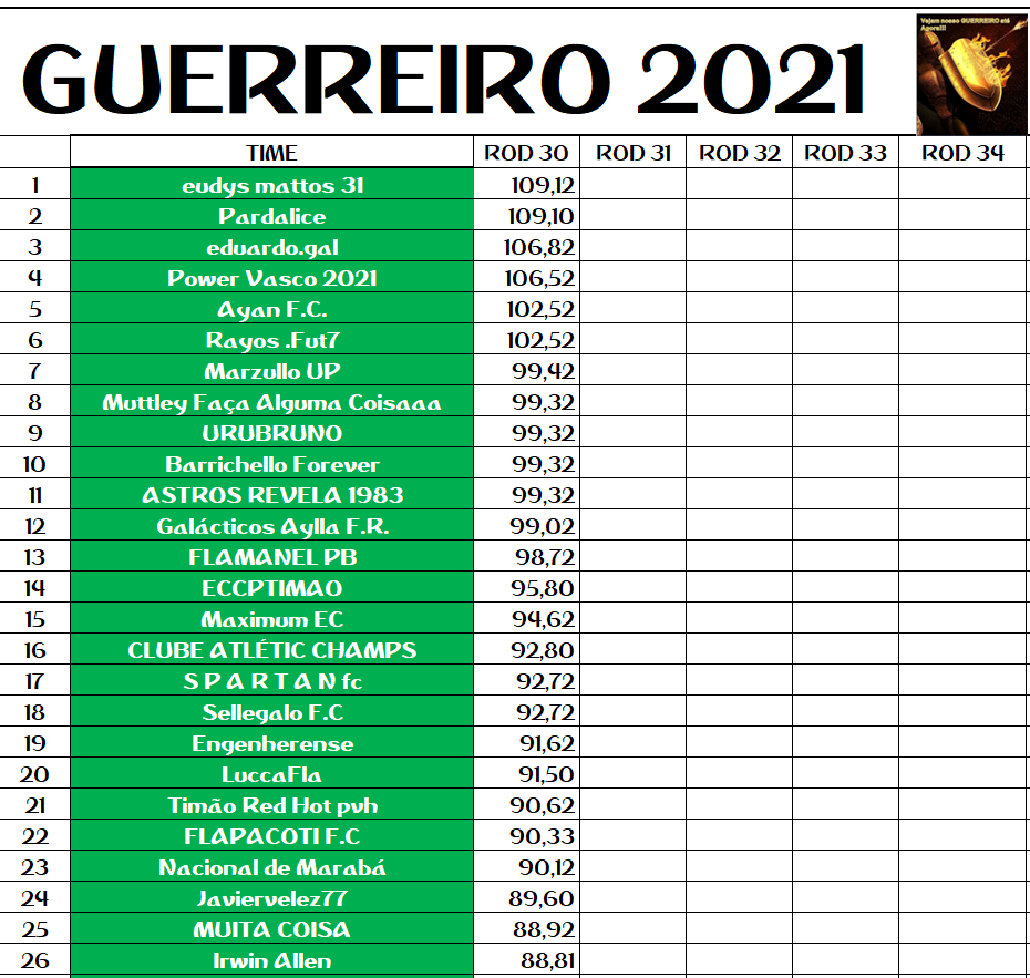 DISPUTA DO GUERREIRO – RODADA 30