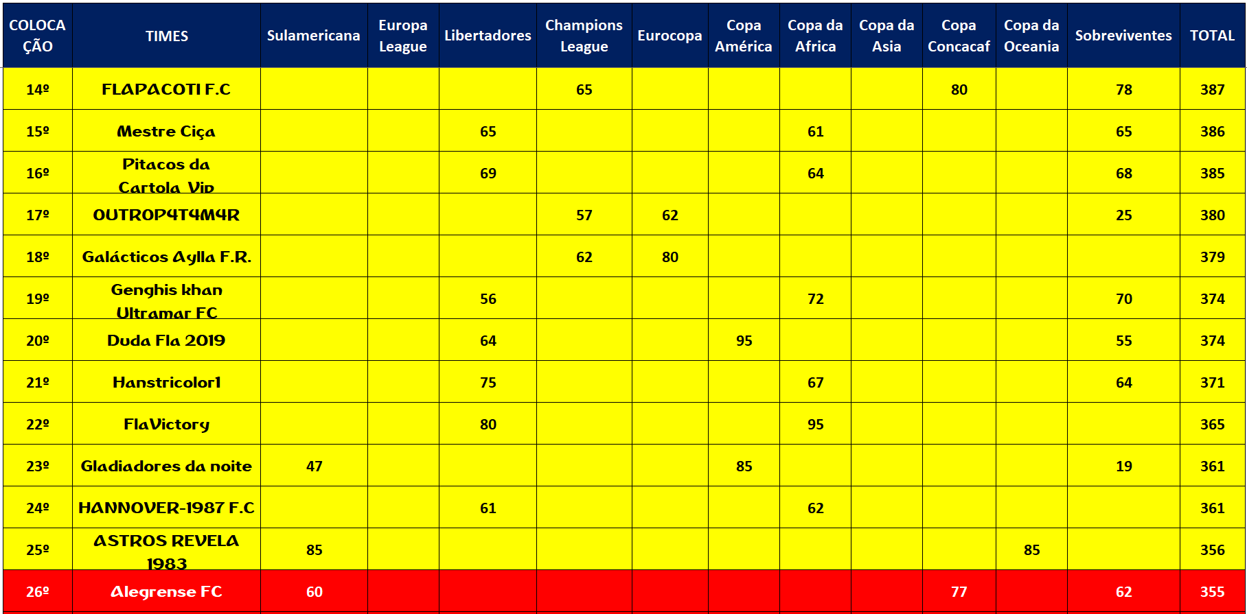 CHAMPIONS LEAGUE SOCAMPEONATOS CLASSIFICAÇÃO