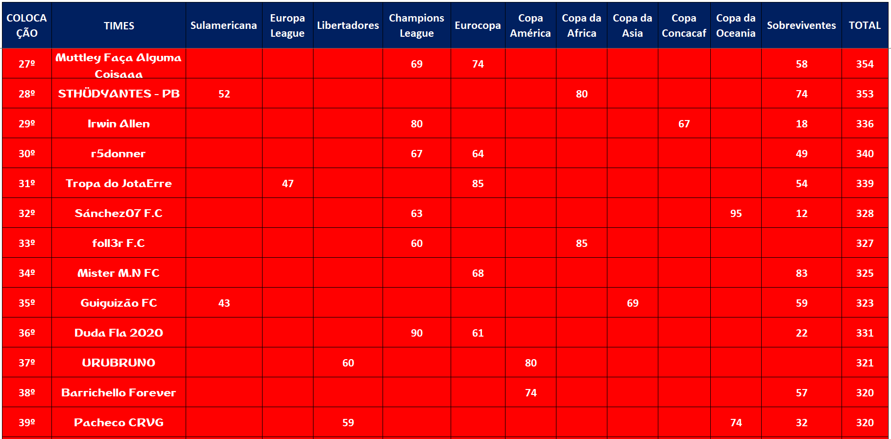 RANKING – RODADA 29
