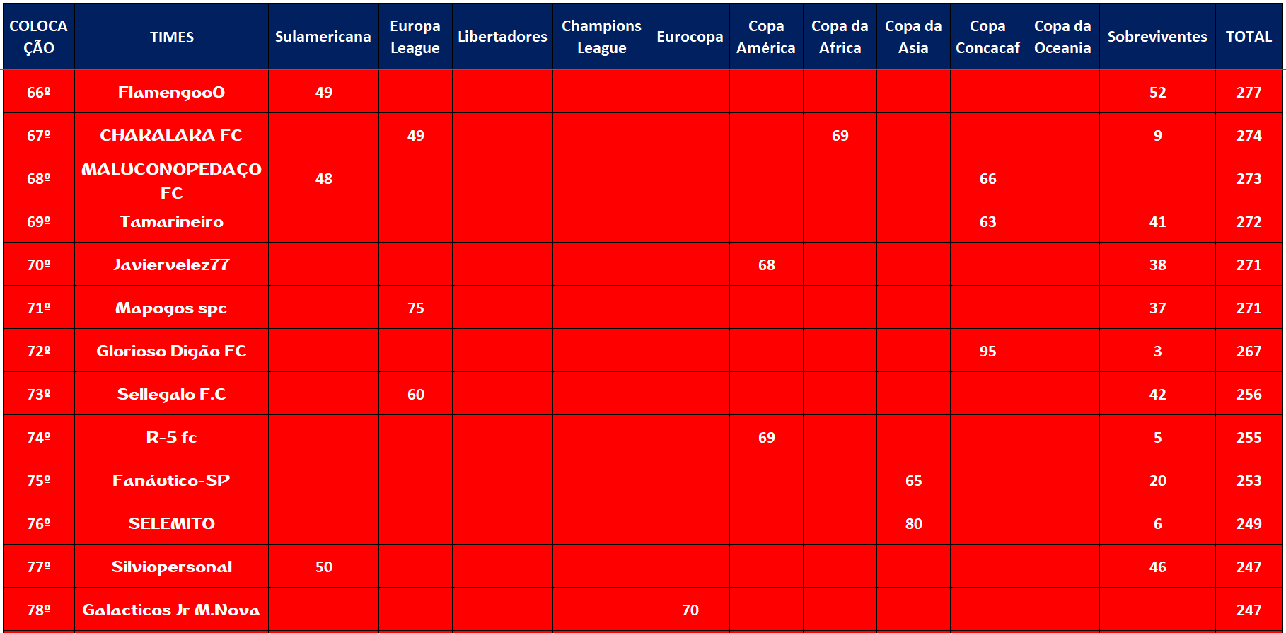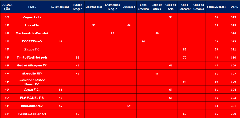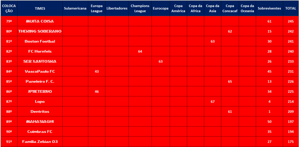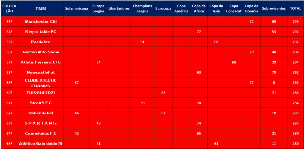 CLASSIFICAÇÃO – O MAIOR CAMPEONATOS DA HISTÓRIA