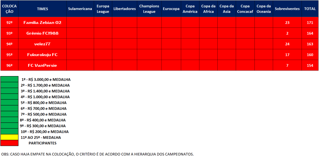 SOBREVIVENTES DA TEMPORADA – RODADA 30