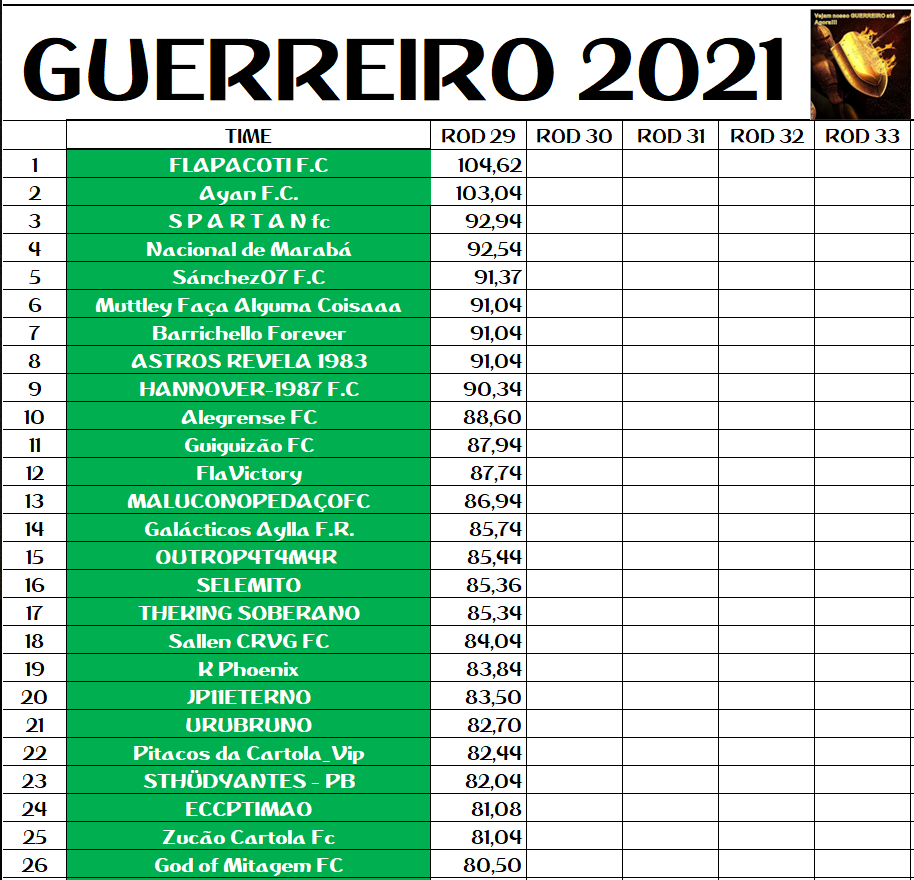 DISPUTA DO GUERREIRO – RODADA 29