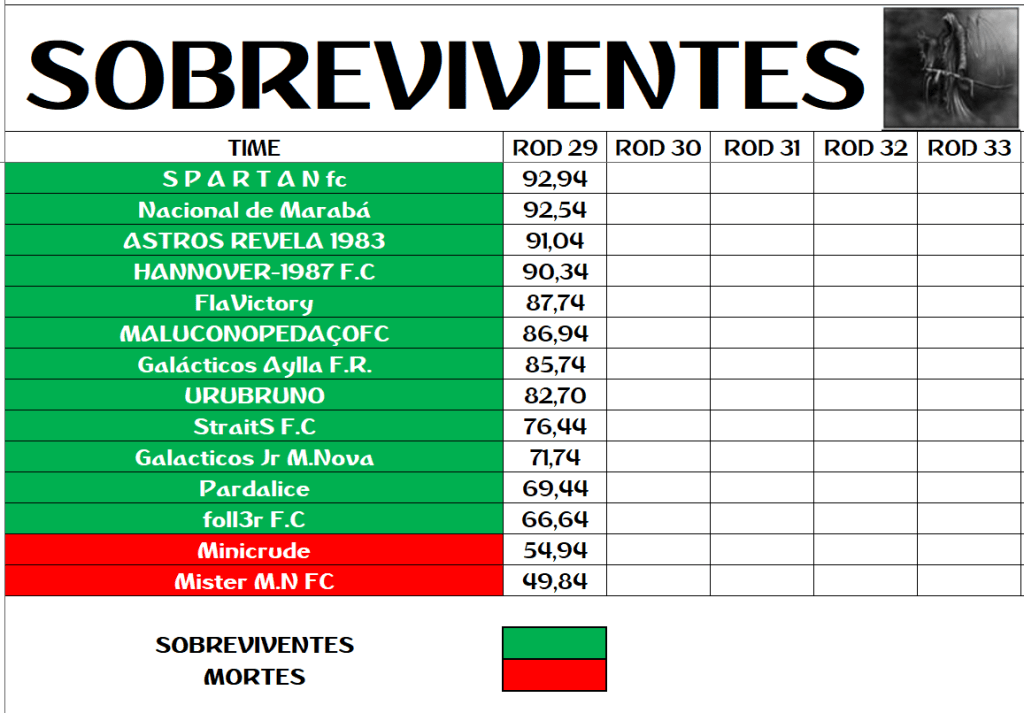 SOBREVIVENTES DA TEMPORADA – RODADA 29