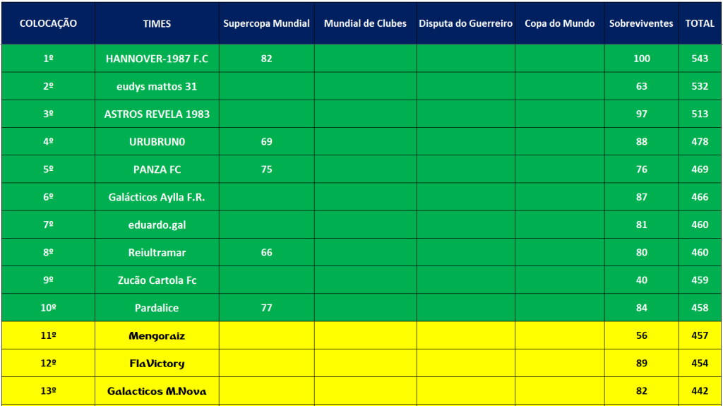 SUPERCOPA MUNDIAL – SEMI FINAL E DISPUTA DO 5º,9º,13º LUGAR – JOGO ÚNICO Publicado em 01/12/2021 por socampeonatos