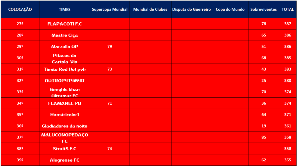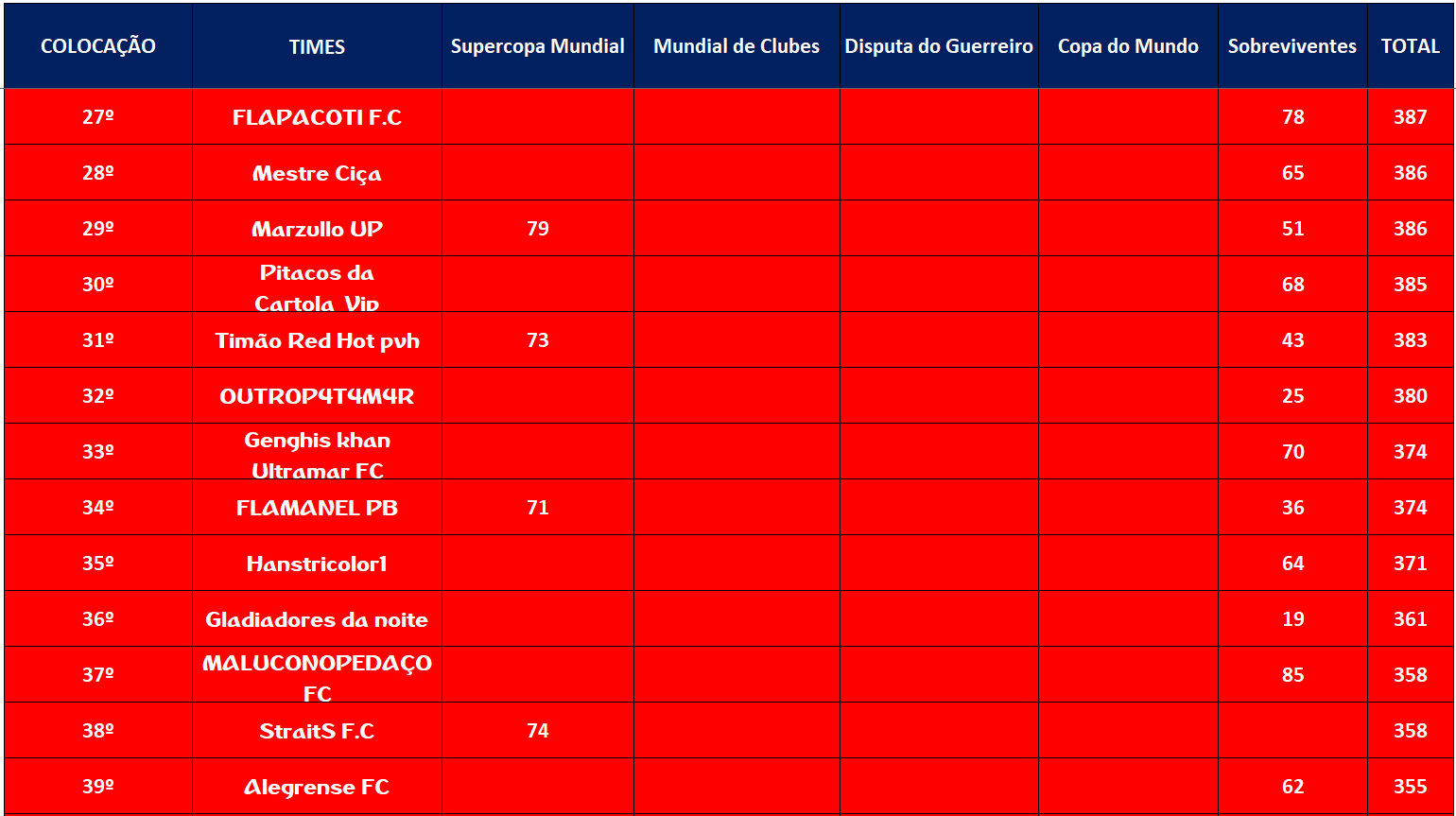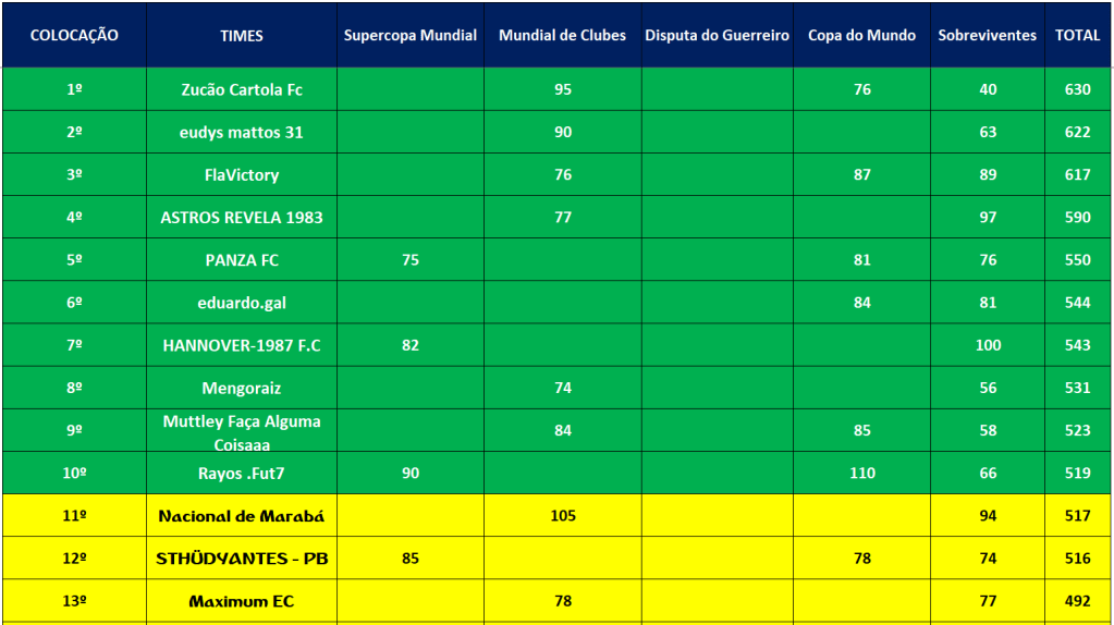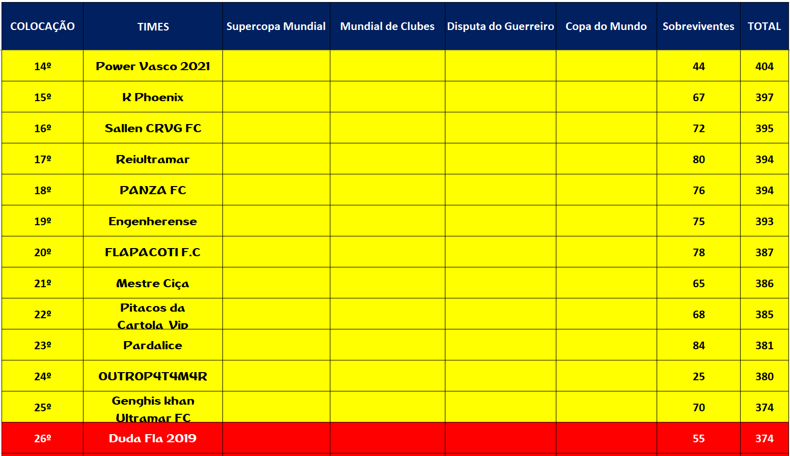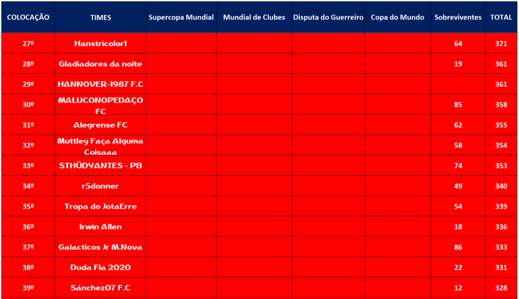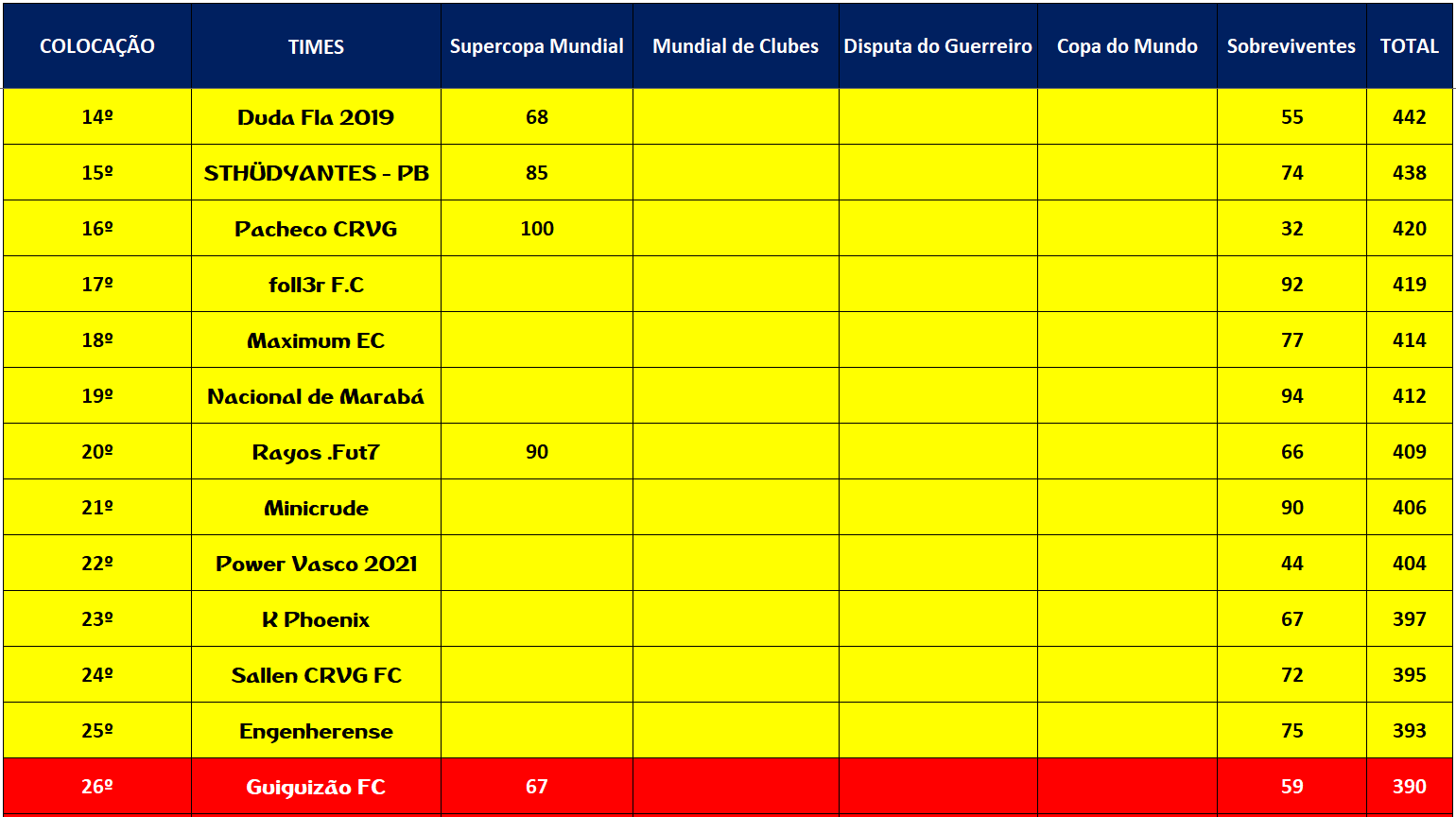 COPA DO MUNDO – FINAL E DISPUTA DO 3º,5º,7º,9º,11º,13º,15º LUGAR – JOGO ÚNICO Publicado em 10/12/2021 por socampeonatos