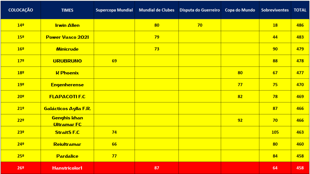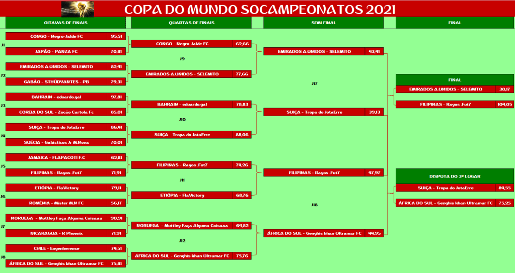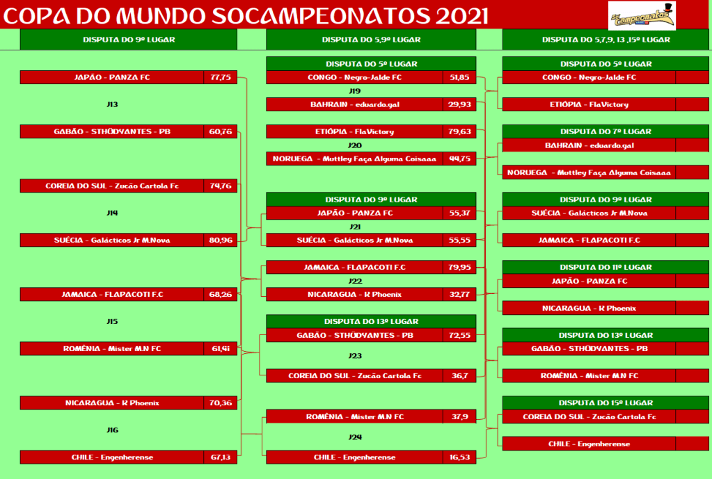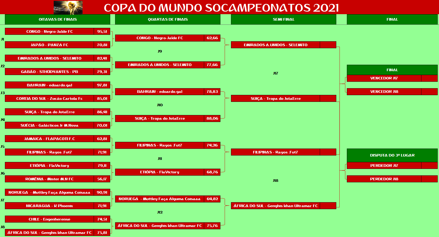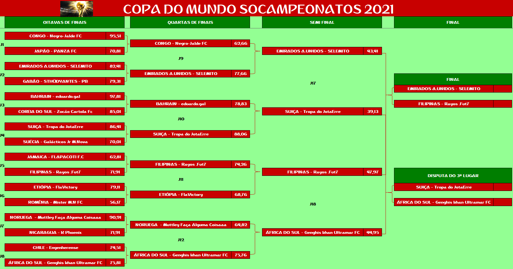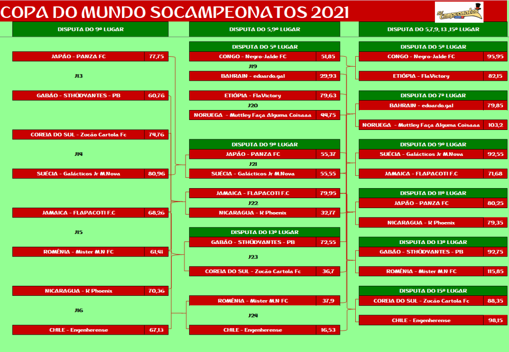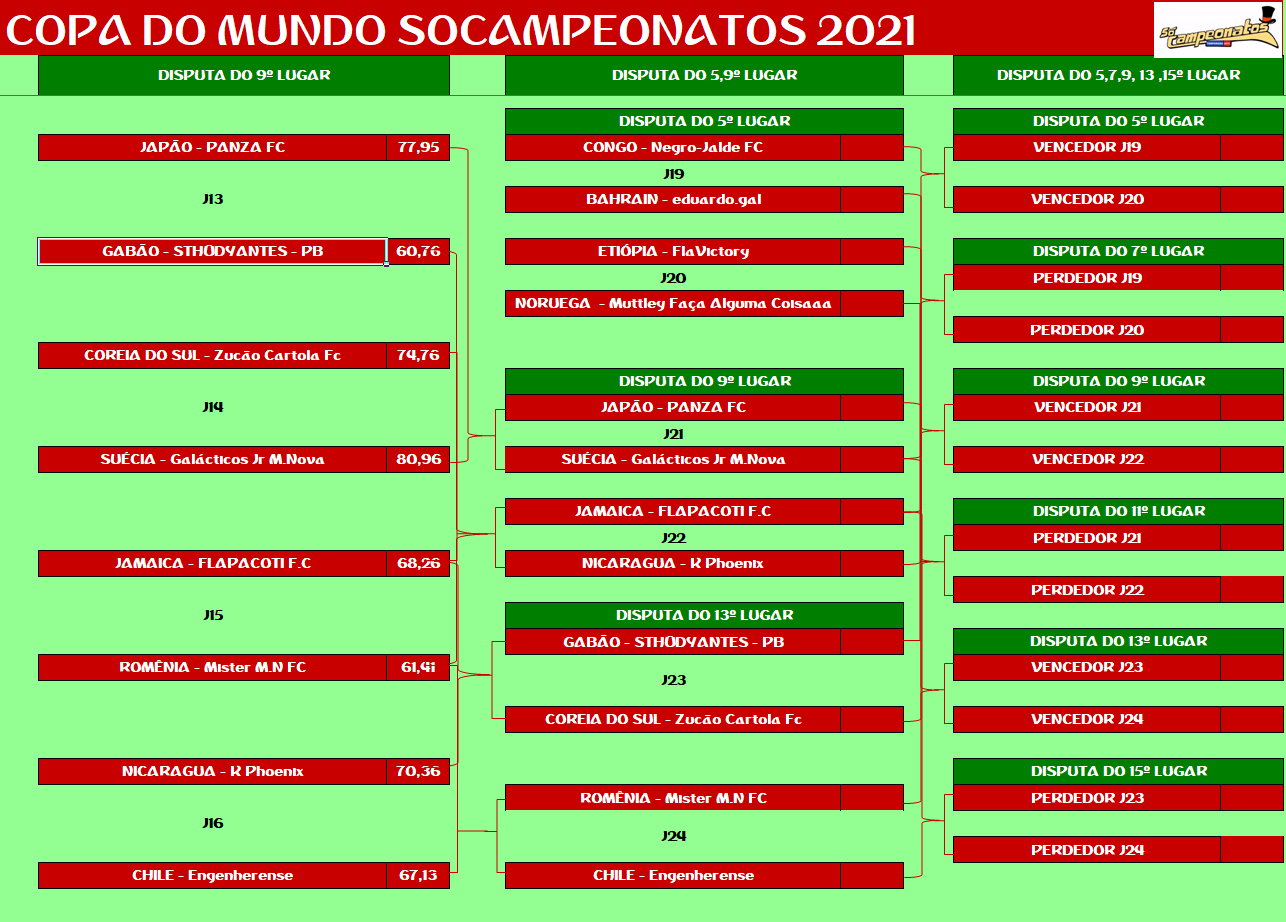 COPA DO MUNDO – SEMI FINAL E DISPUTA DO 5º,9º,13º LUGAR – JOGO ÚNICO Publicado em 07/12/2021 por socampeonatos