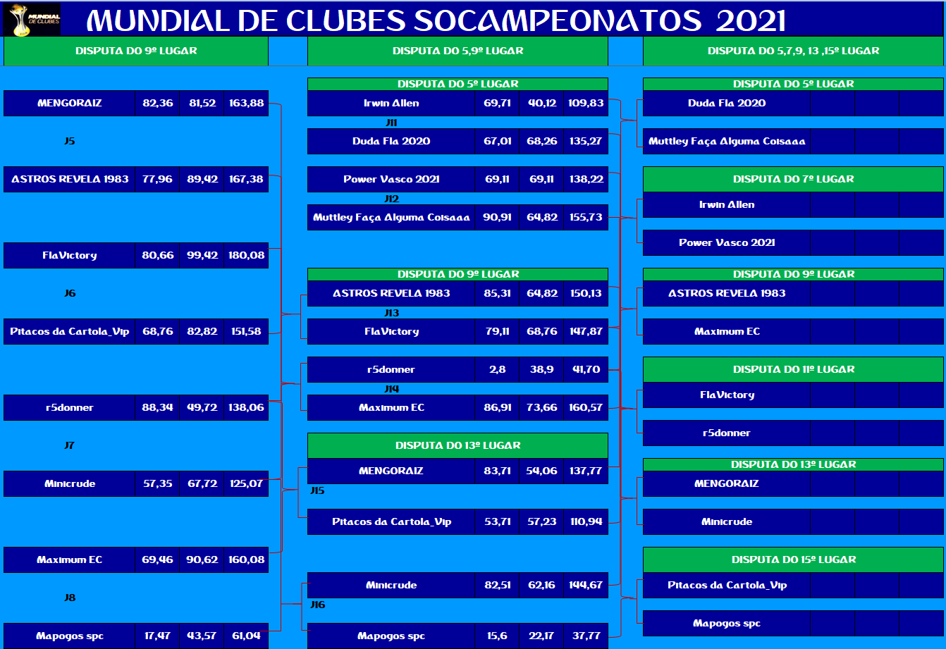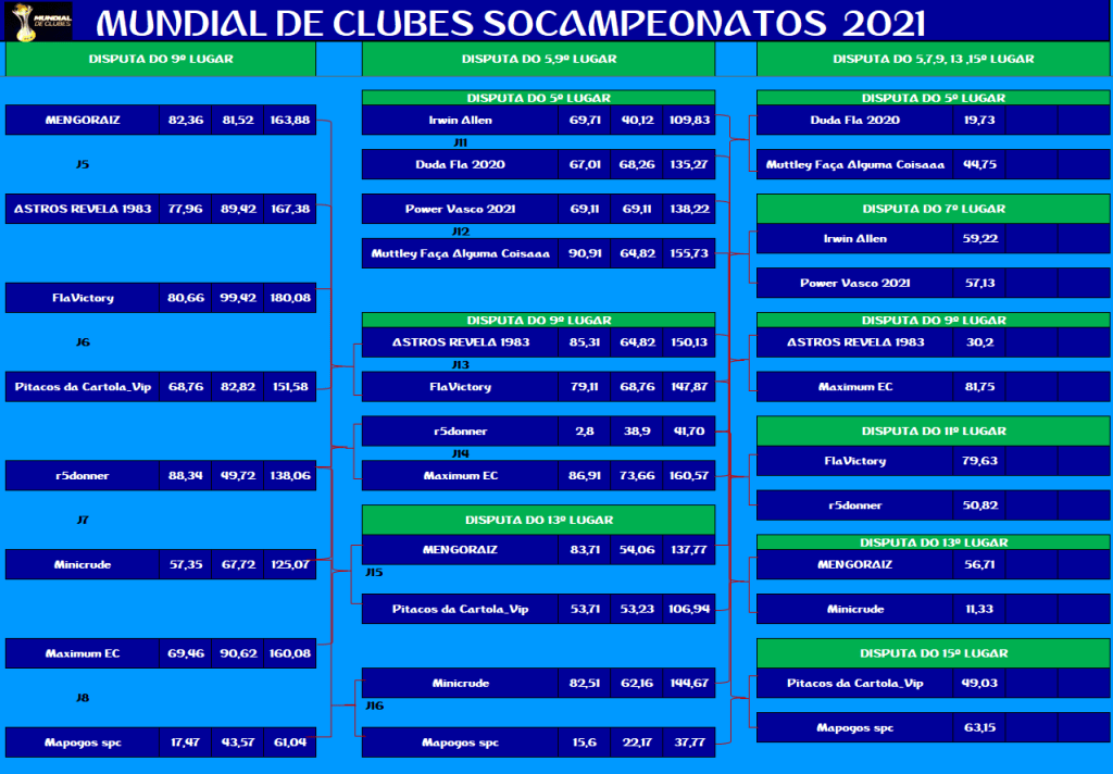 MUNDIAL DE CLUBES – FINAL E DISPUTA DO 3º,5º,7º,9º,11º,13º,15º LUGAR – VOLTA Publicado em 10/12/2021 por socampeonatos