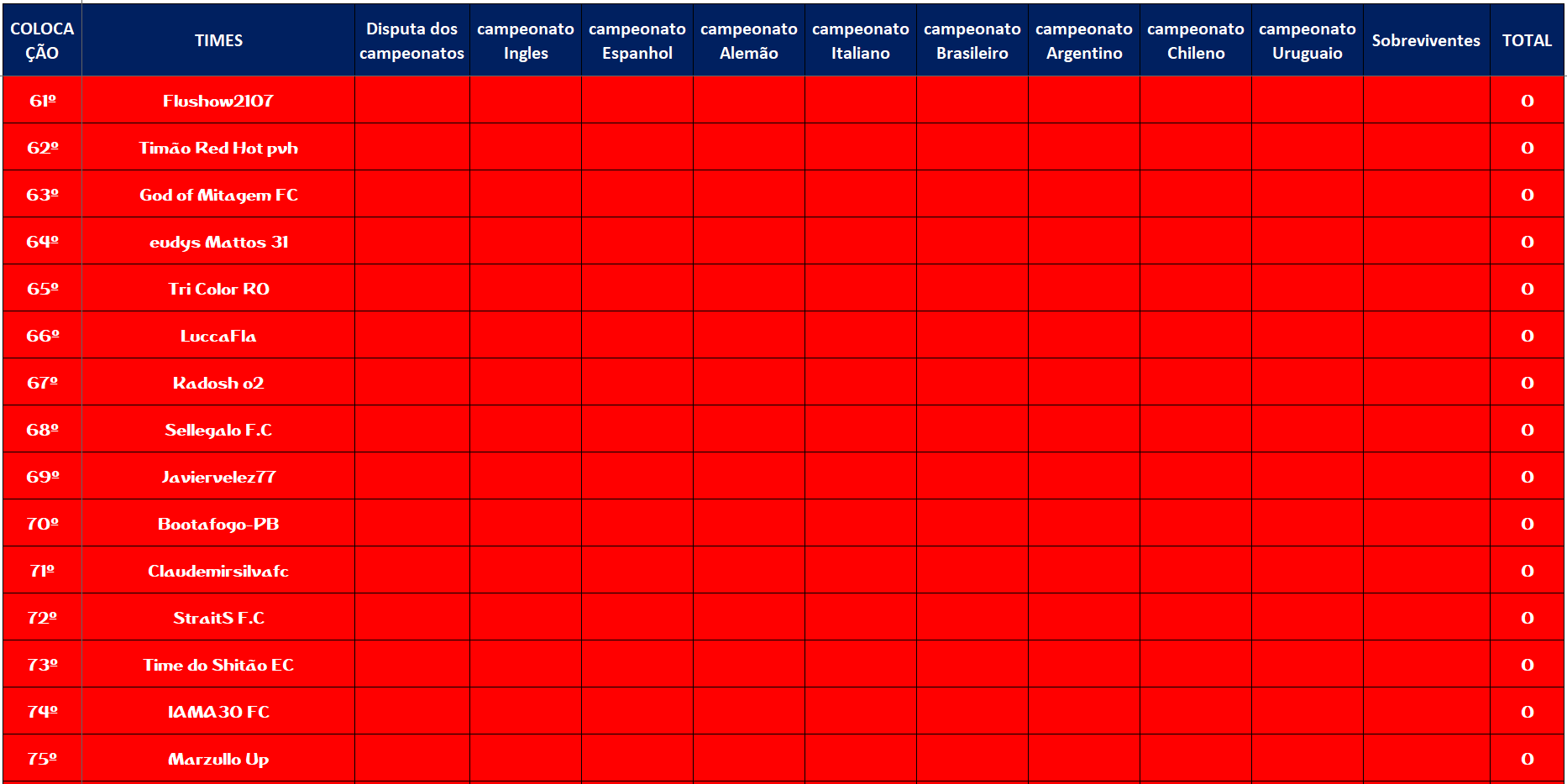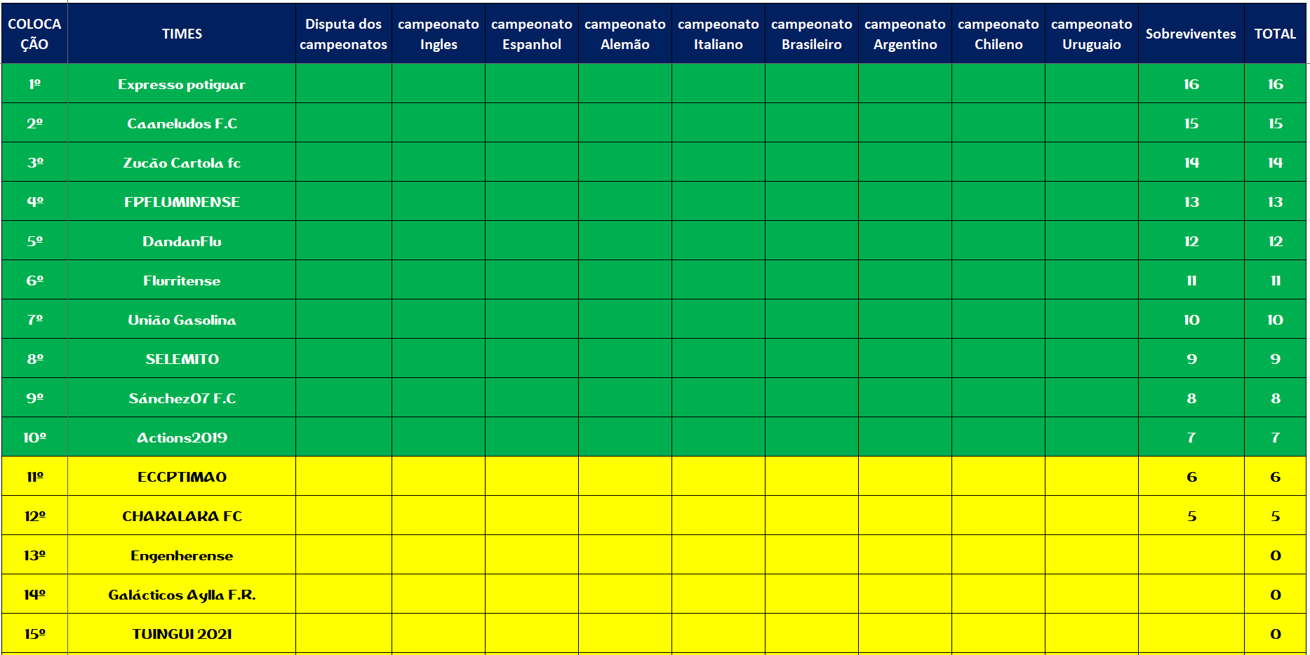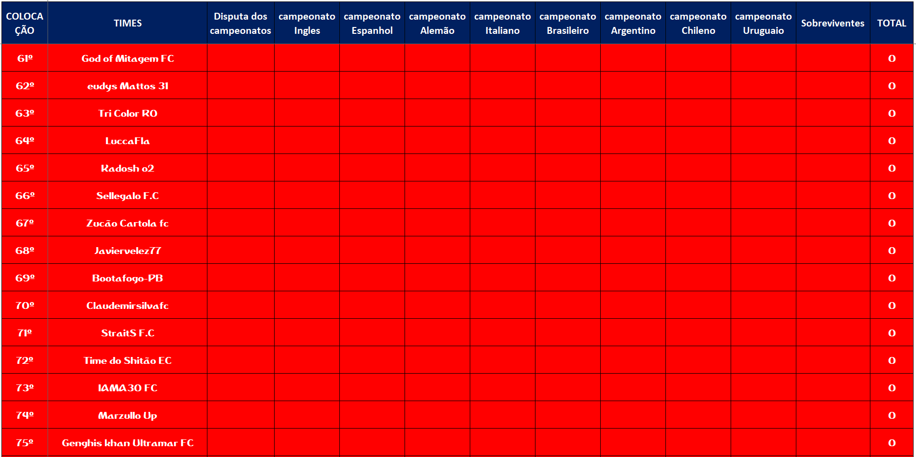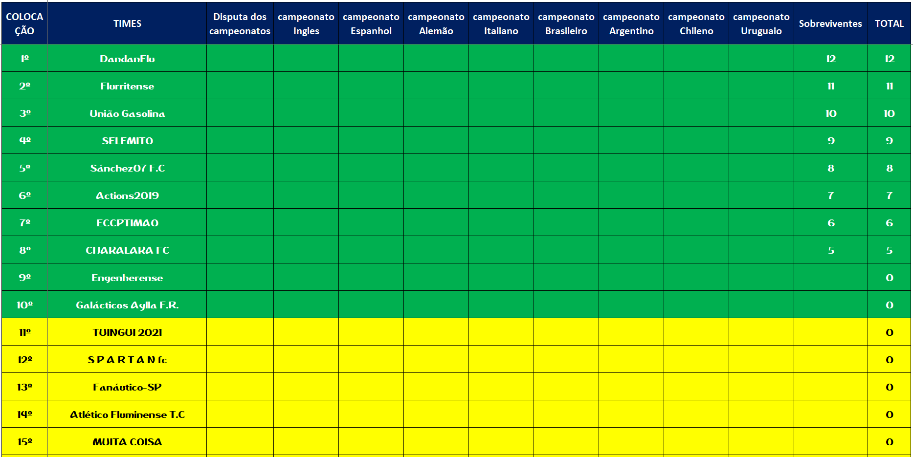 CLASSIFICAÇÃO – O MAIOR CAMPEONATOS DA HISTÓRIA