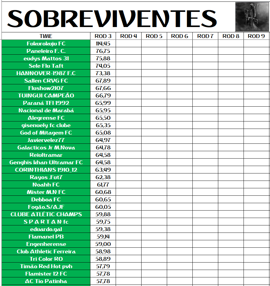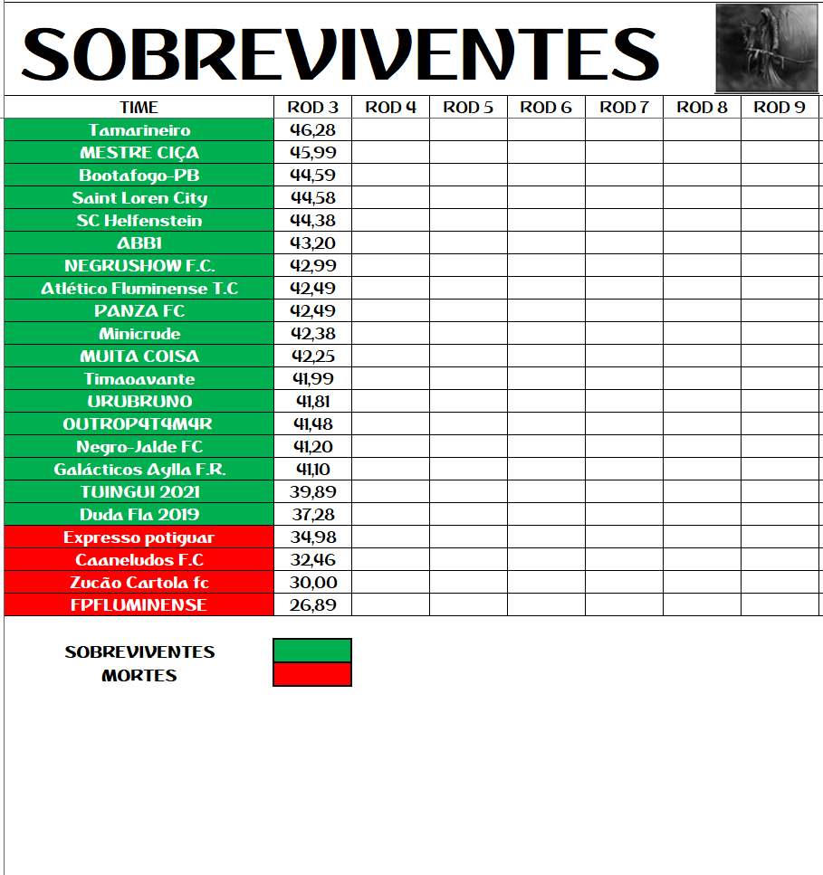 SOBREVIVENTES DA TEMPORADA – RODADA 3