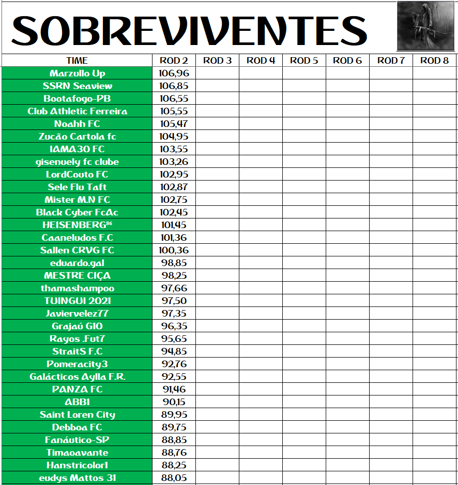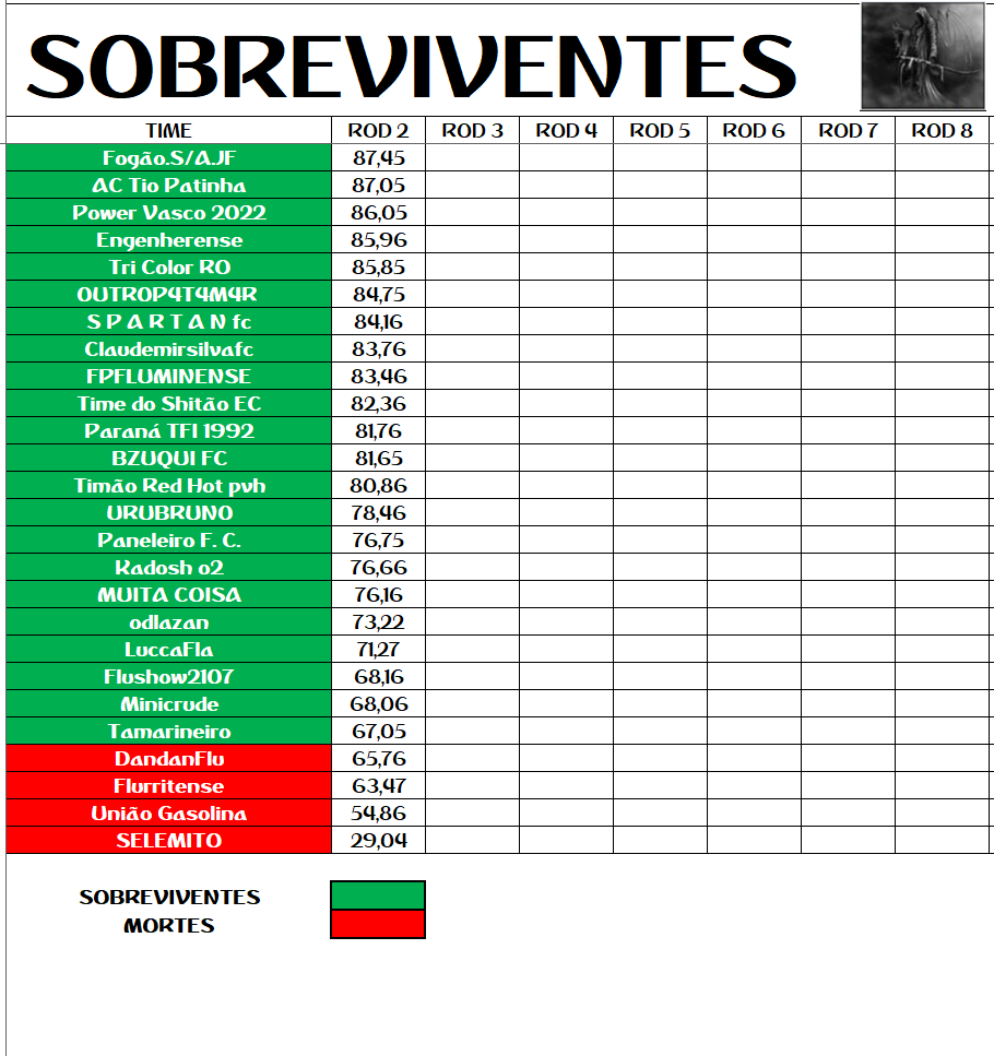 SOBREVIVENTES DA TEMPORADA – RODADA 2