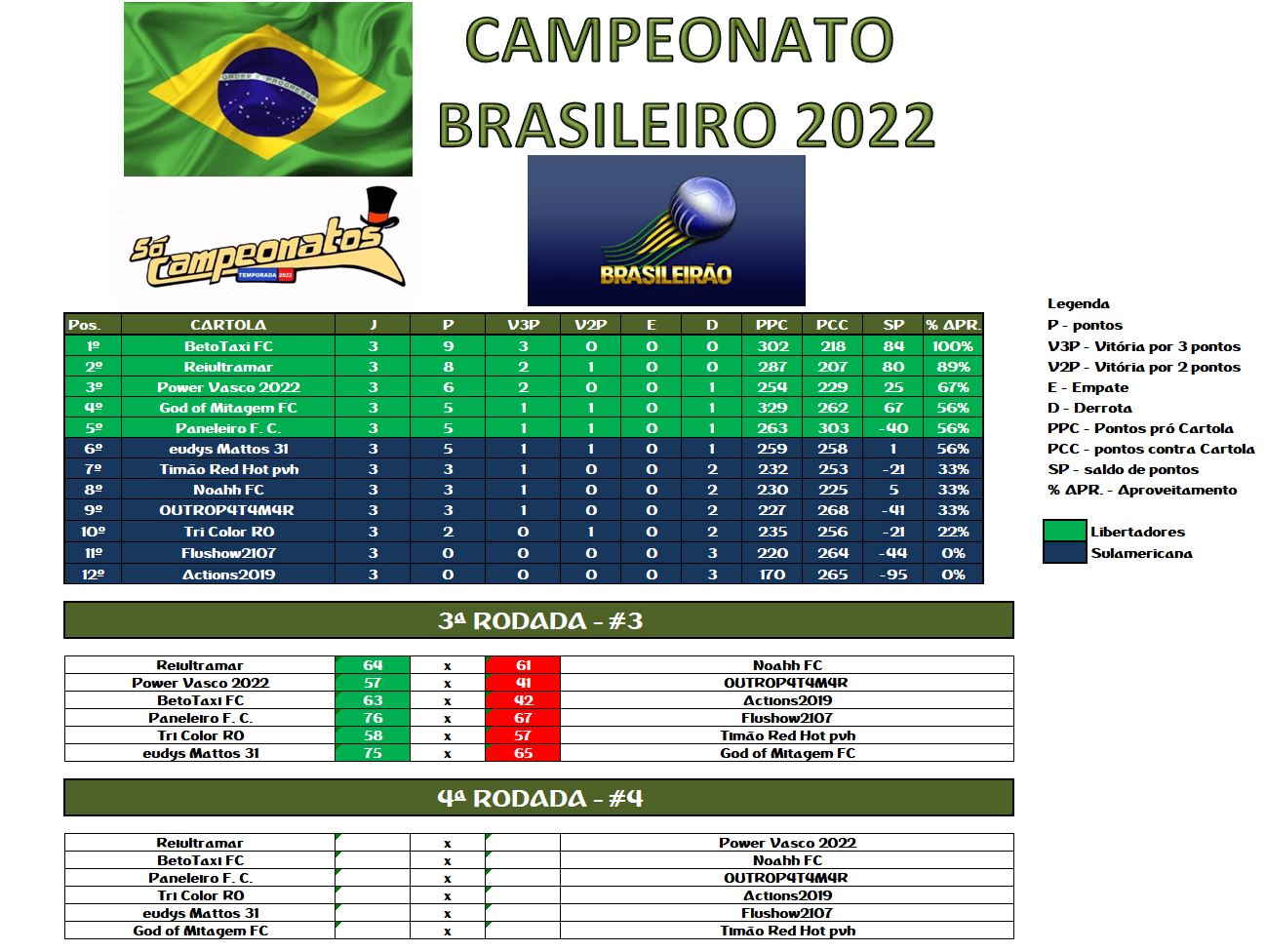 TABELA PONTOS CORRIDOS SOCAMPEONATOS