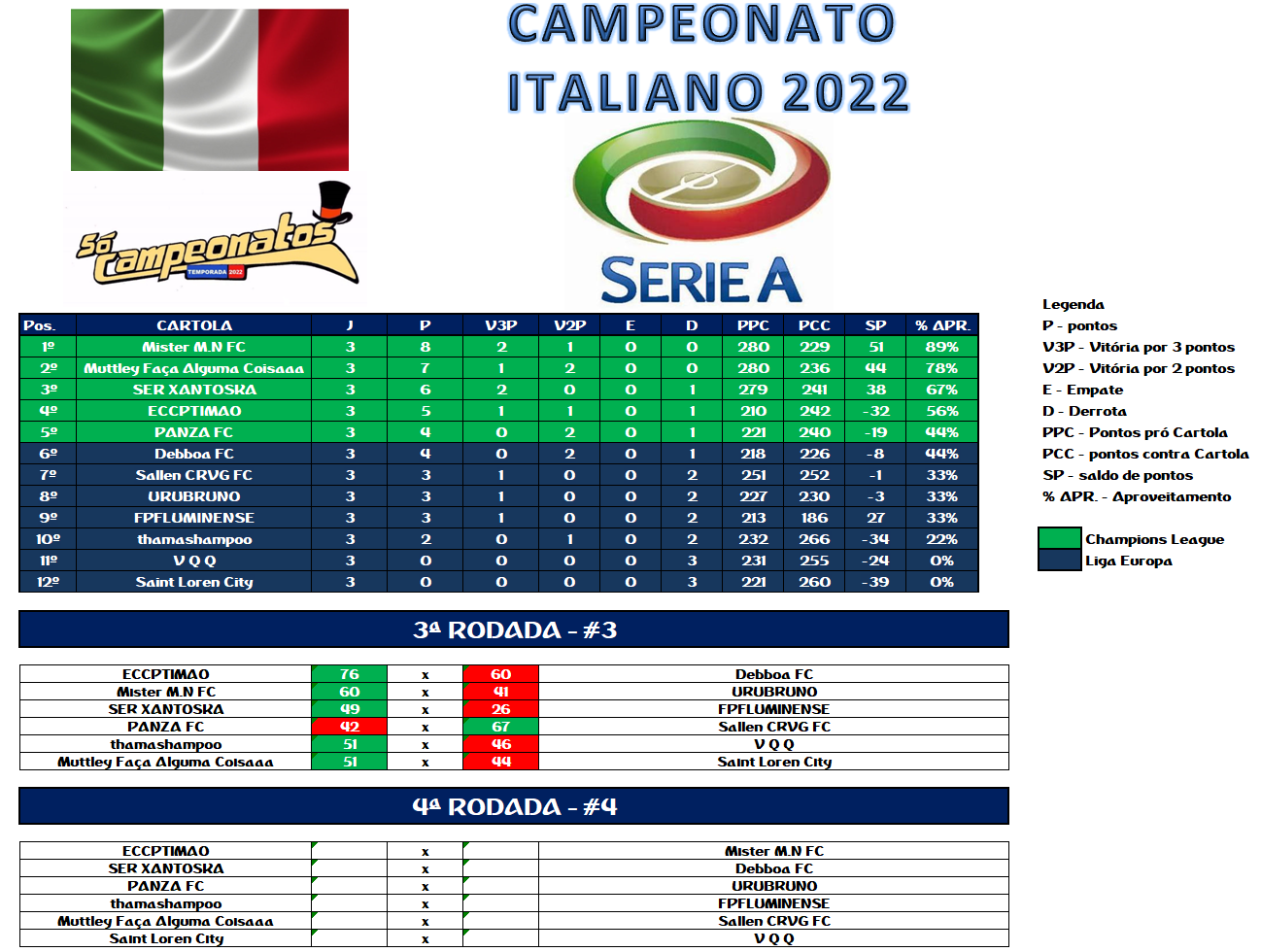 CLASSIFICAÇÃO CAMPEONATO ITALIANO